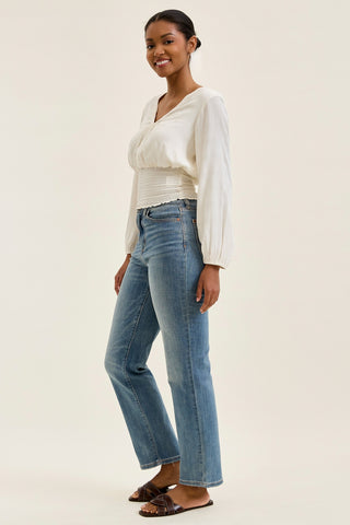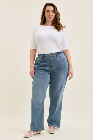 Judy Blue’s Tummy Control technology features a hidden, stretchy panel that smooths and flatters your midsection, no squeezing, no stiffness. Just a comfortable, confidence-boosting fit that moves with you all day long.