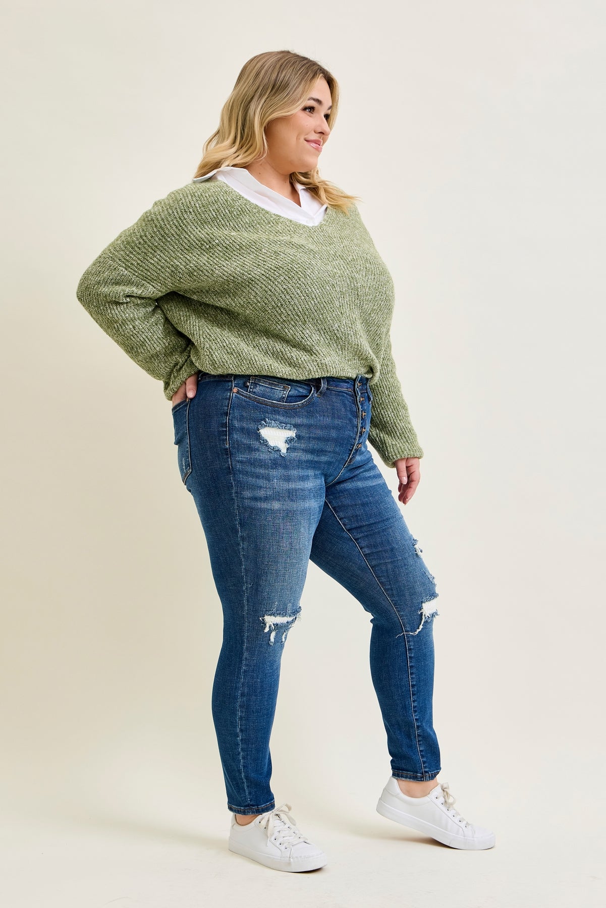 Sadie Mid Rise ThermaDENIM Insert Patch Skinny Jeans - PLUS