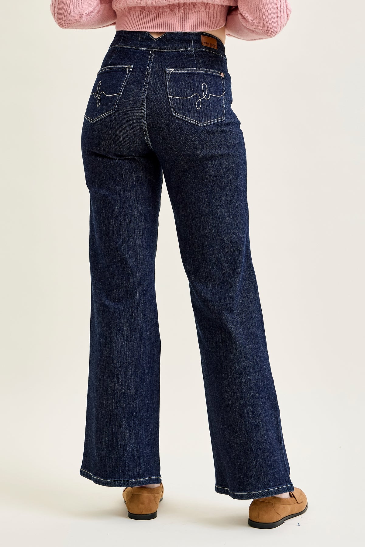 Eliana Rinse Geometric WB & Pkt Emb Wide Leg Jeans