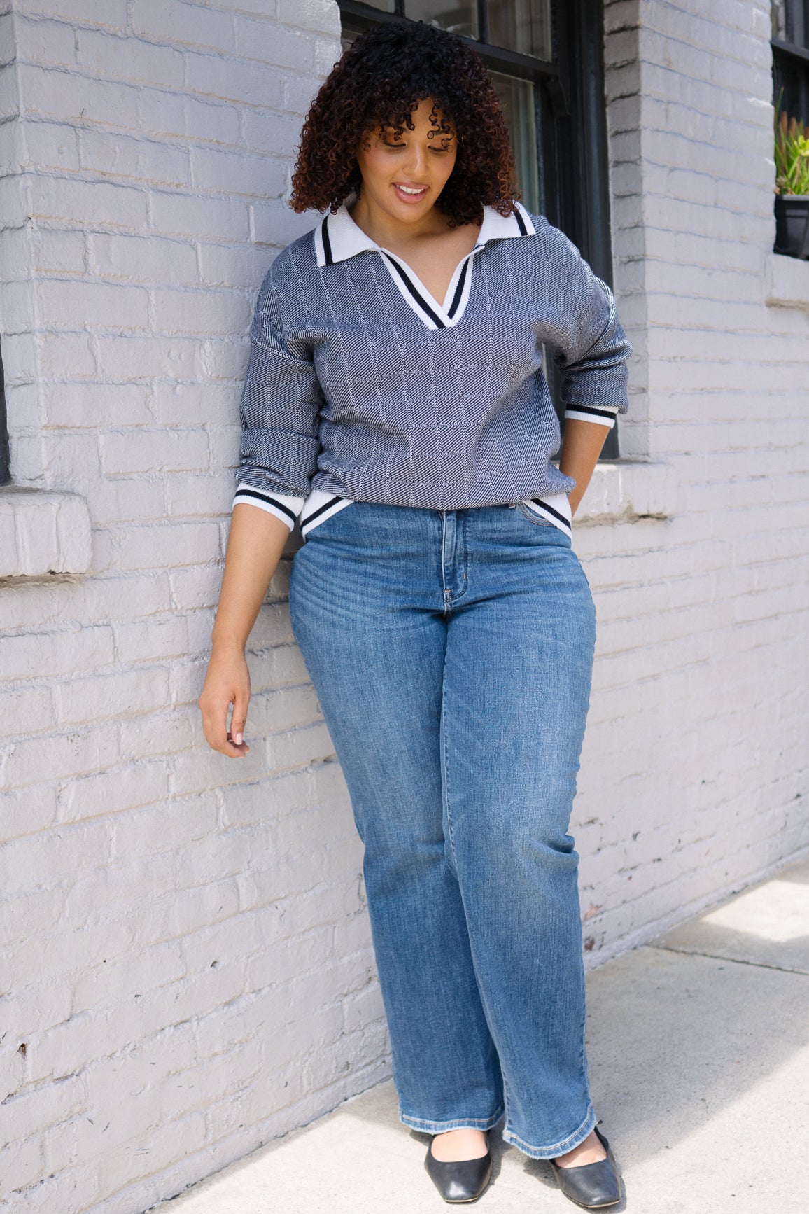 Samantha Mid Rise V-Front Straight Jeans - PLUS