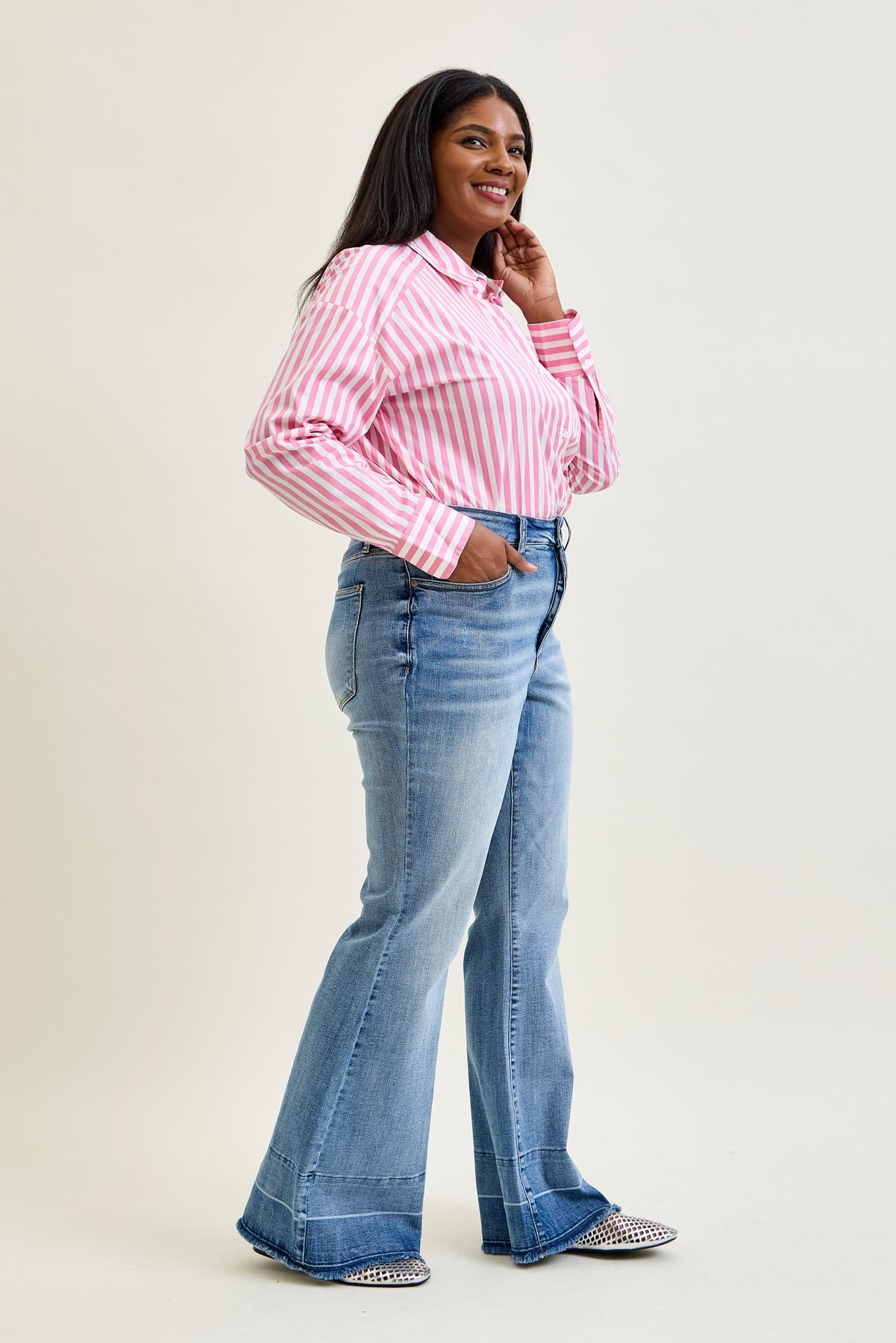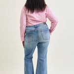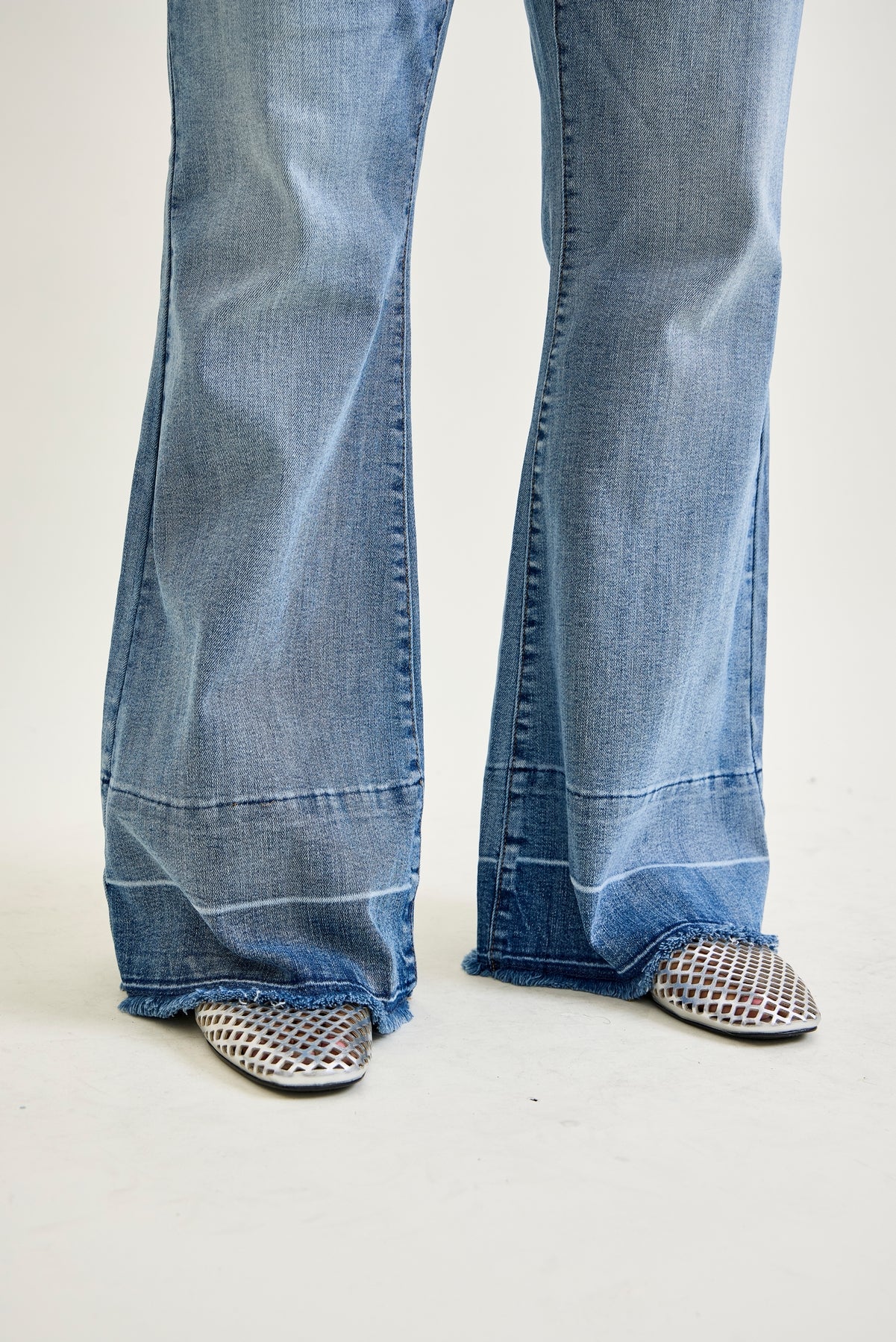 • High-rise comfort: The Giselle Tummy Control Release Hem Flare jeans offer a comfortable high-rise fit, with a waistline that sits at 12 1/4 inches above the natural waist, providing excellent coverage and support.