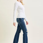 - Subtle Ripped Accents: Mildly ripped detailing adds a touch of edgy style to the classic bootcut design.
