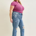 Faye Stone Wash Ripped Bootcut Jeans - PLUS