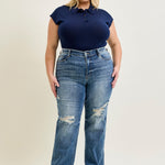 Kaylee High Waist Distressed Dad Jeans - PLUS