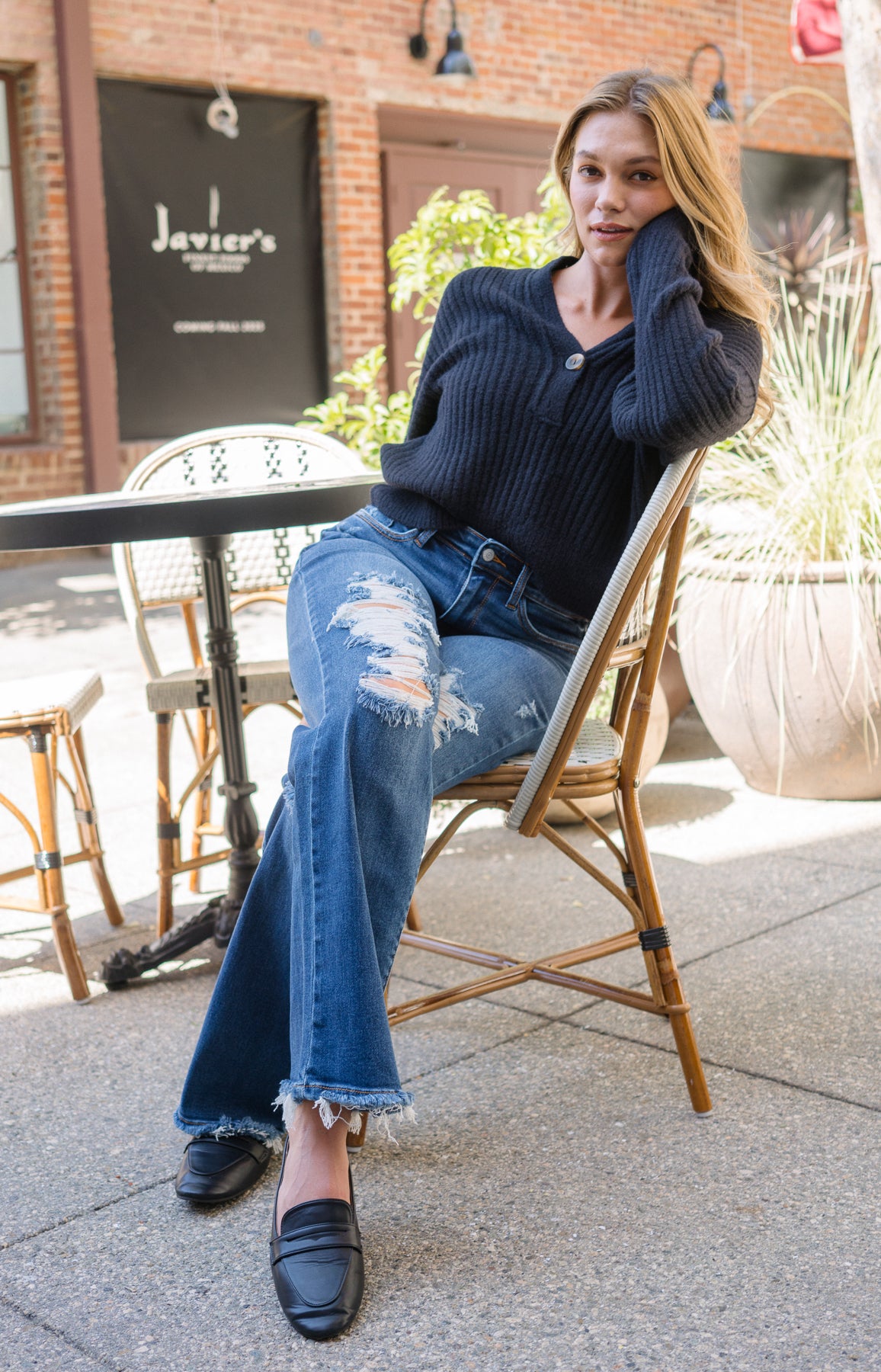I’ve been wanting to try dad jeans, and finally decided to give for it knowing I can easily return if I had to. No need to return because I love them! Love the fit and love the wash of these jeans. I don’t usually go for too much distress, but I like the look on these! Also, loving that they are mid rise! More comfortable than high rise for me!