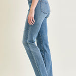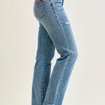 Make a bold statement with the Ophelia Mid Rise Distressed Dad Jeans, the ultimate blend of vintage vibes and modern edge.