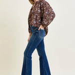 Jasmine is ready to make a statement. With a high rise fit and dramatic flare, this pair turns every sidewalk into a runway.