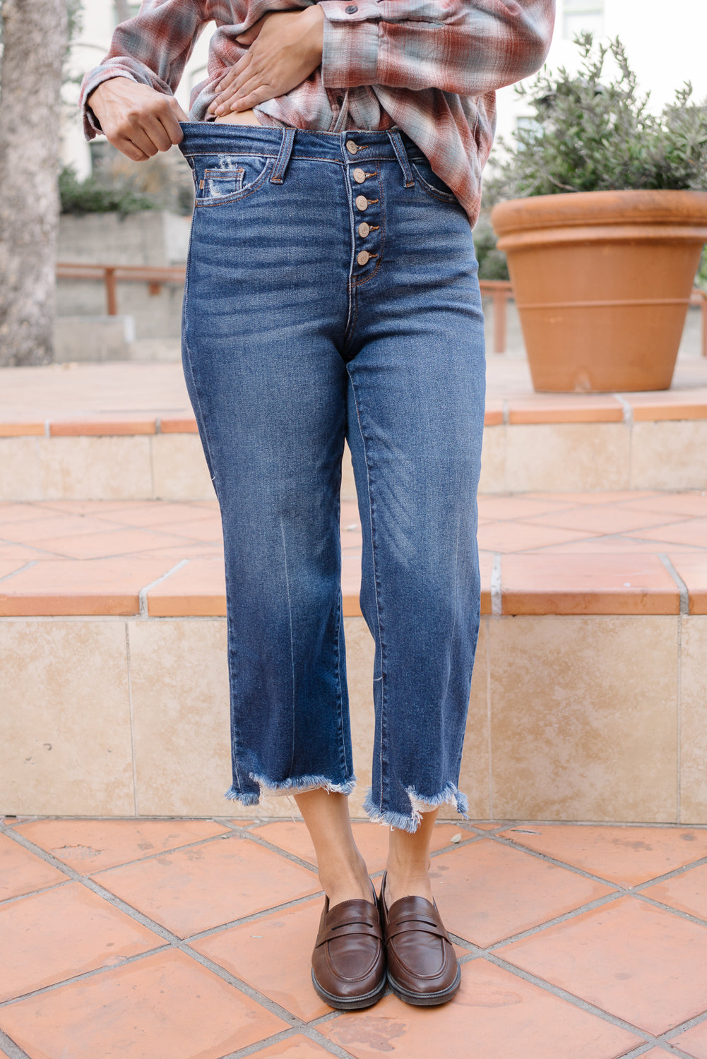 Wren High Rise Button Fly Distressed Hem Crop Wide