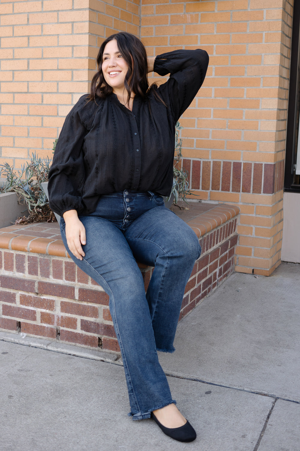 The Lisa High Rise Button Fly Jeans are the perfect combination of chic and casual, ready to take on your day in style!