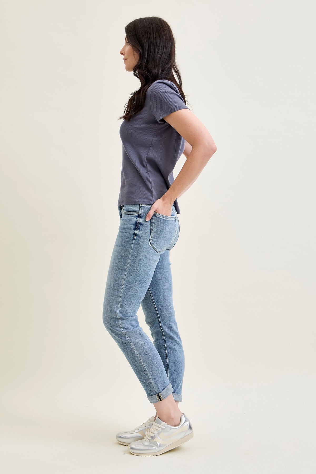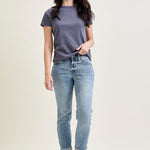 These were instantly my new favorite pair of Judy Blues. I have a hard time finding jeans with shorter inseams—I am 5’3’’ and these fit perfectly. I downsized by 2 and the fit is spot on! Not skin tight but not loose like a ‘dad jean’. I have been buying Judy Blue jeans since 2020, and the quality and fit keeps me coming back!
