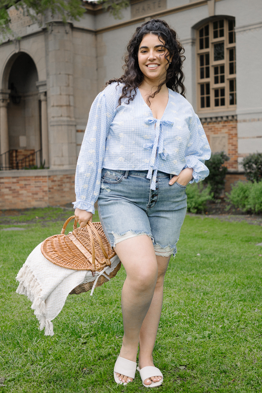 Elle Button Fly Mid-Length Shorts With Distressing - PLUS