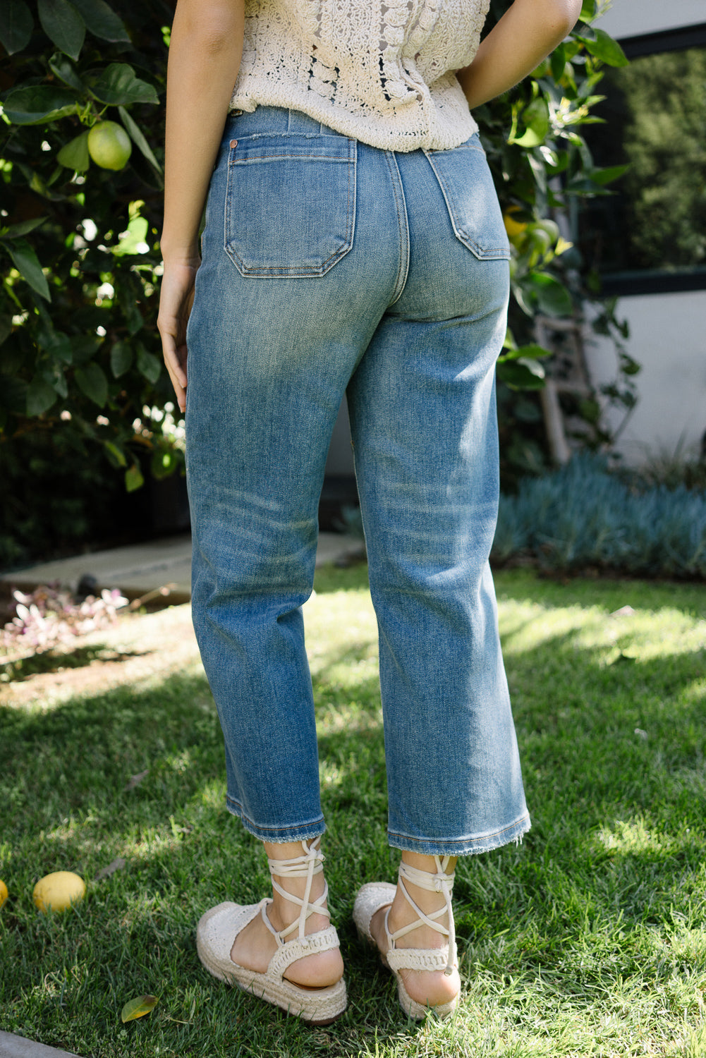 A modern take on utility style, the Georgia High Rise Utility Cropped Wide Leg jeans blend structure, comfort, and effortless versatility.