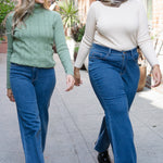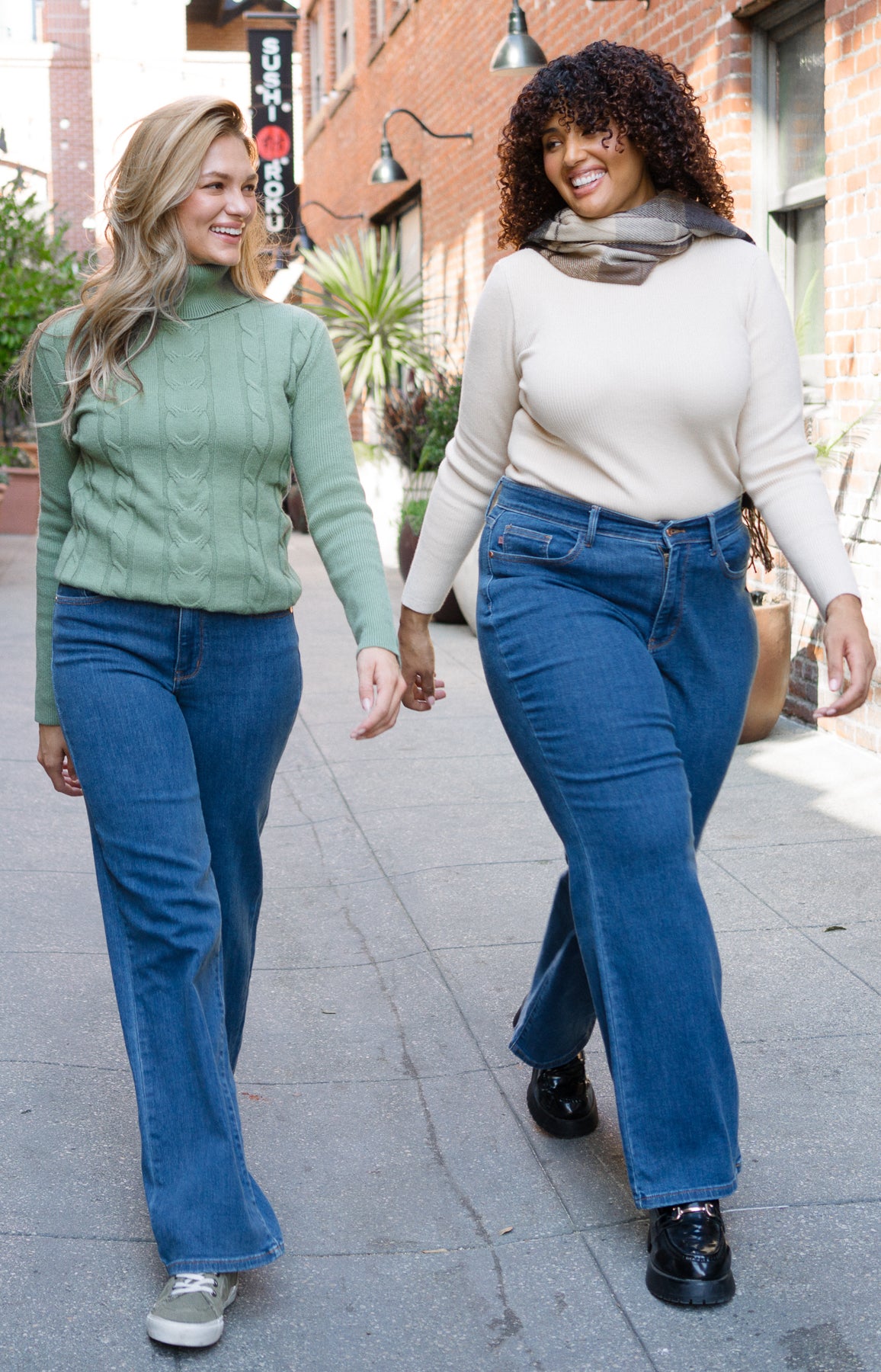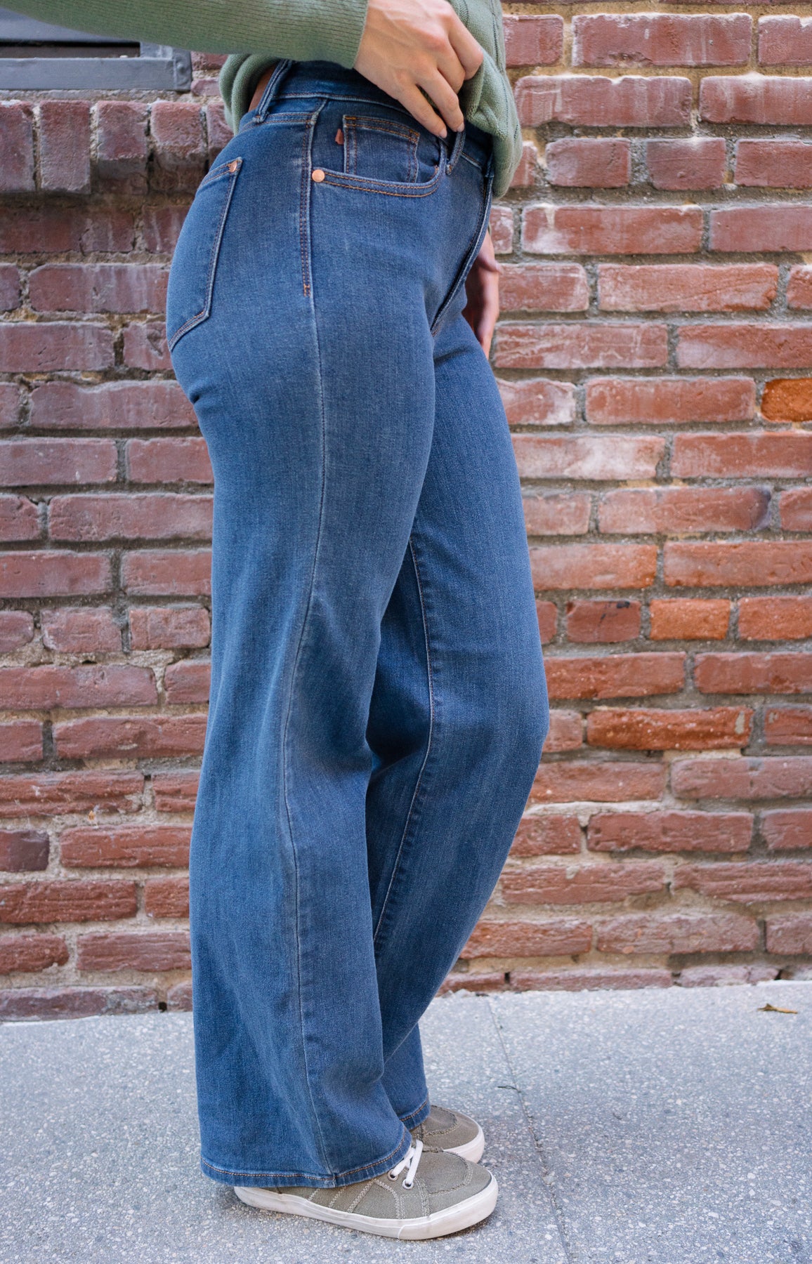 First, I get more compliments when wearing these jeans than I have ever received. They look and feel great. I now have 7 pair of varies styles but the wide leg high waisted are the best. If one pairs these jeans with a shorter shirt it makes the perfect ensemble. Just fantastic.
