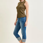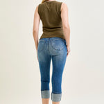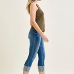 Kayla High Rise Tummy Control Back Shield Pockets & Cuff Capri