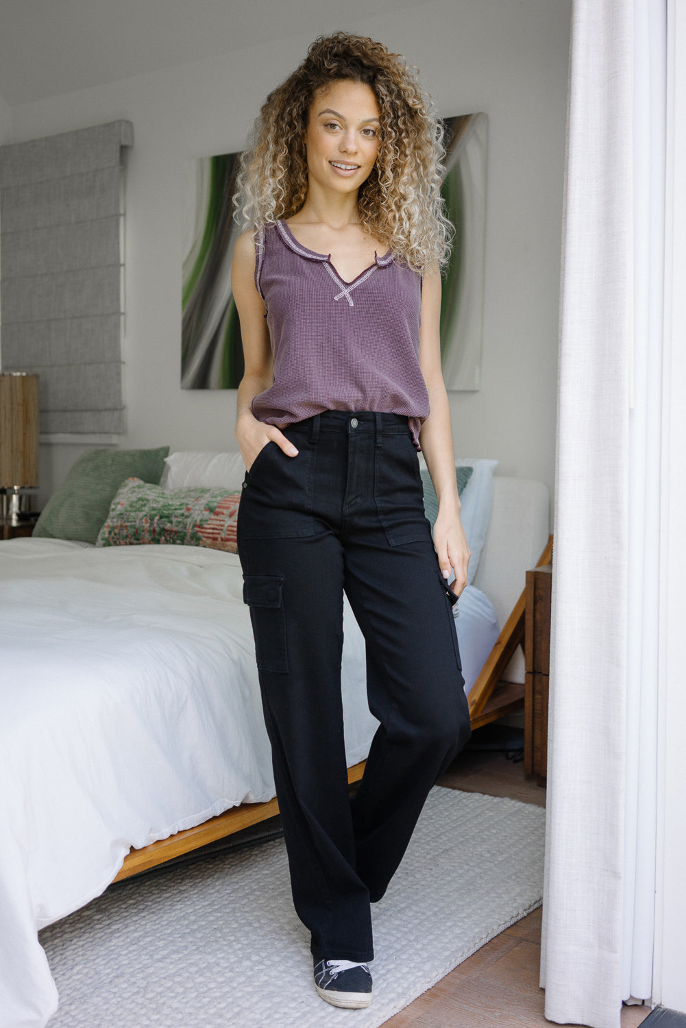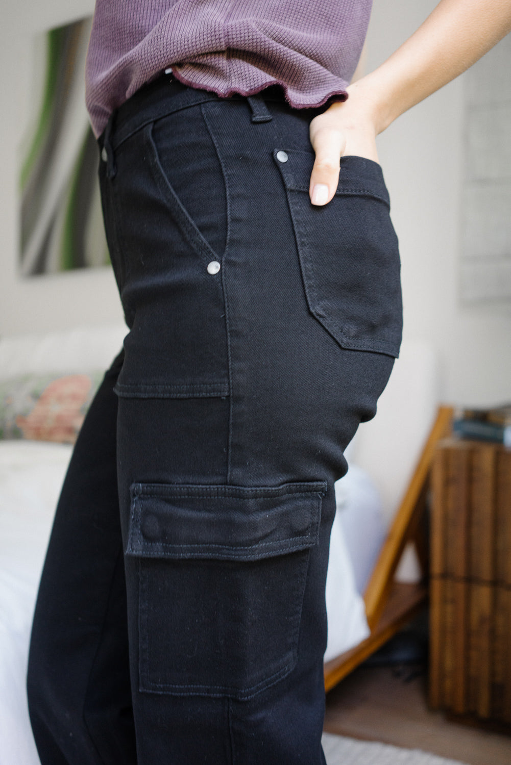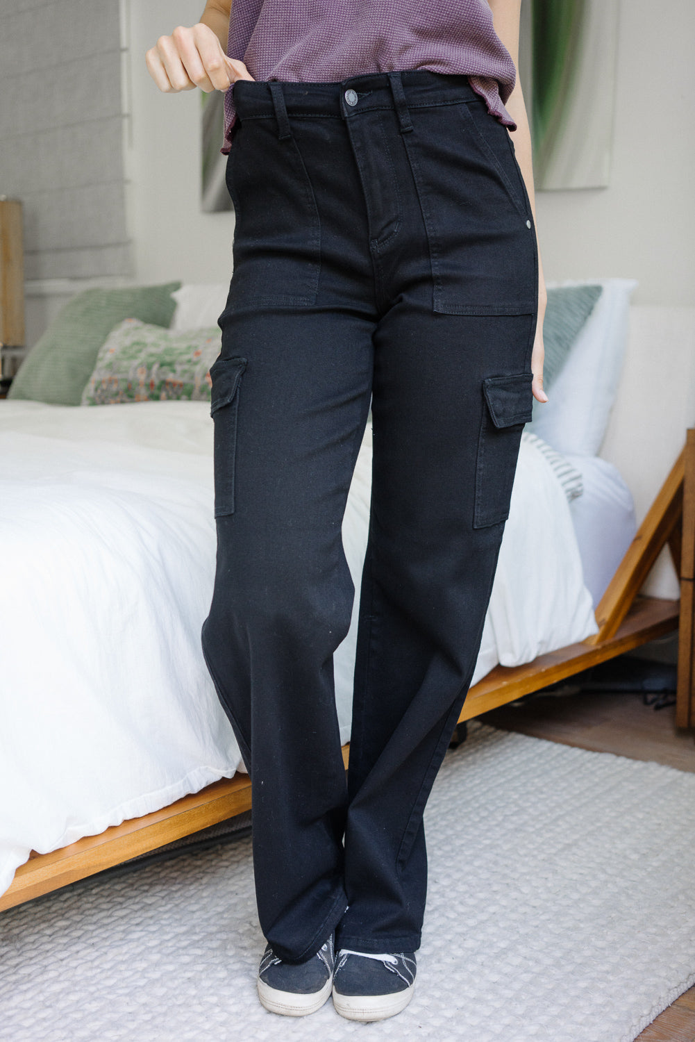 Designed for style and function, the Krystal High Rise Cargo Wide Leg jeans bring a modern edge to a classic silhouette.