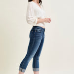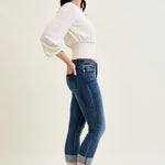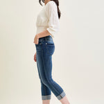 Maddy Mid Rise Dark Wash Cuffed Capri Jeans