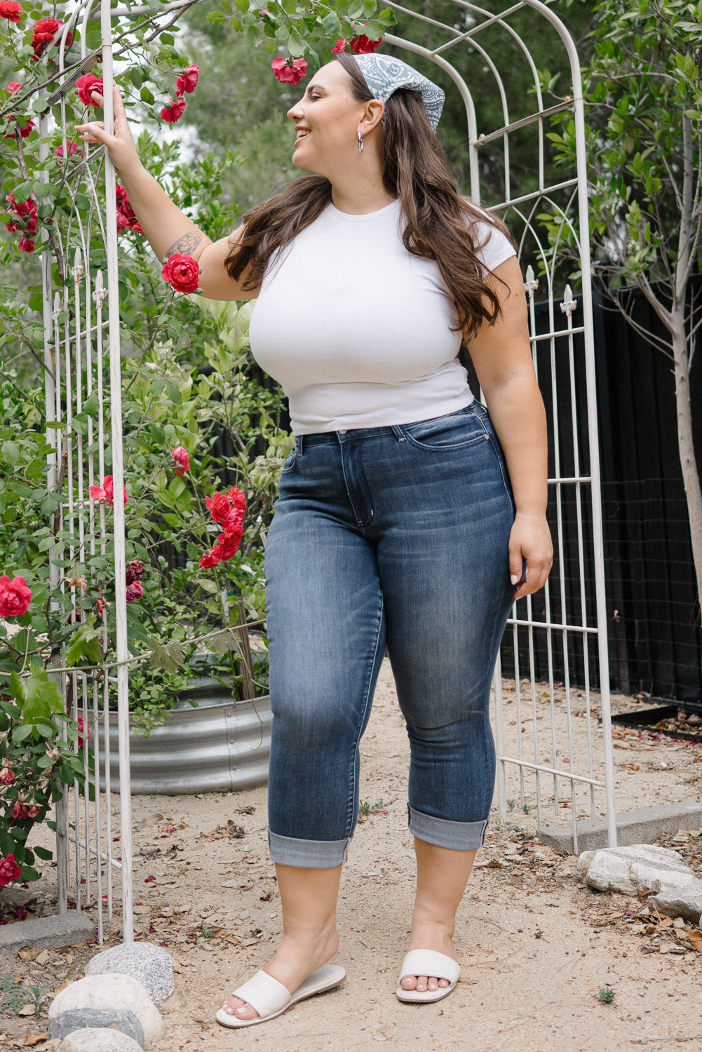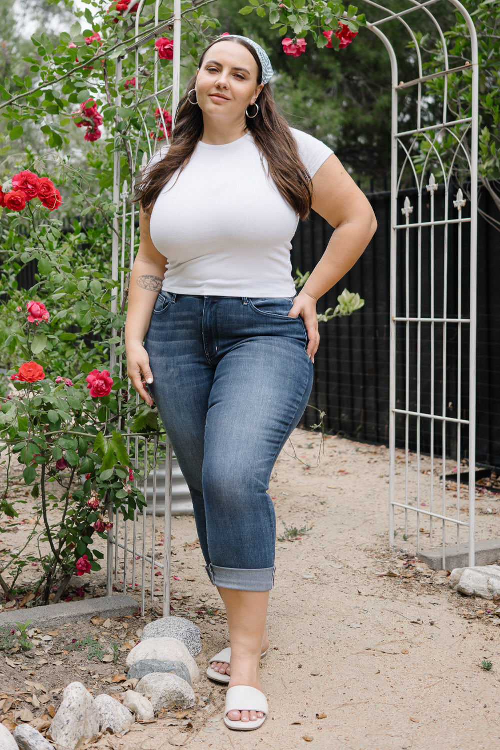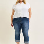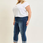Maddy Mid Rise Dark Wash Cuffed Capri Jeans - PLUS