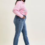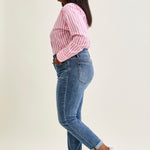 This was my first Judy Blue order. I’ve know many people that LOVE these jeans. I’m plus size, normal size 20 or 22. I ordered size 20. I could barely get them over my hips and no way were they going to zip. Instead of trying to initiate an exchange as I was wanting these jeans for a trip I reordered them in a larger size. Depending on how these fit or don’t fit if I ever order again.