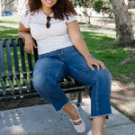 Scarlett High Rise Dark Wash Kick Flare - PLUS