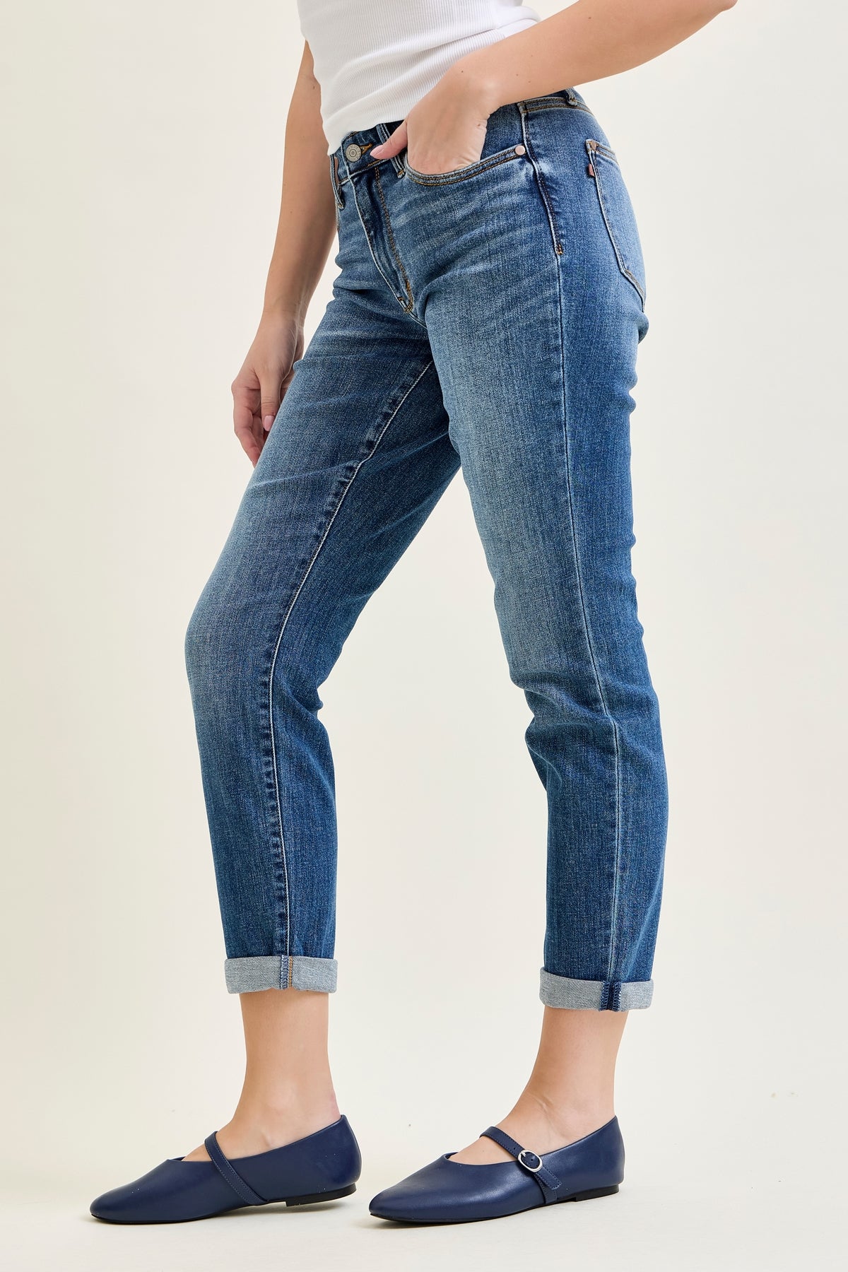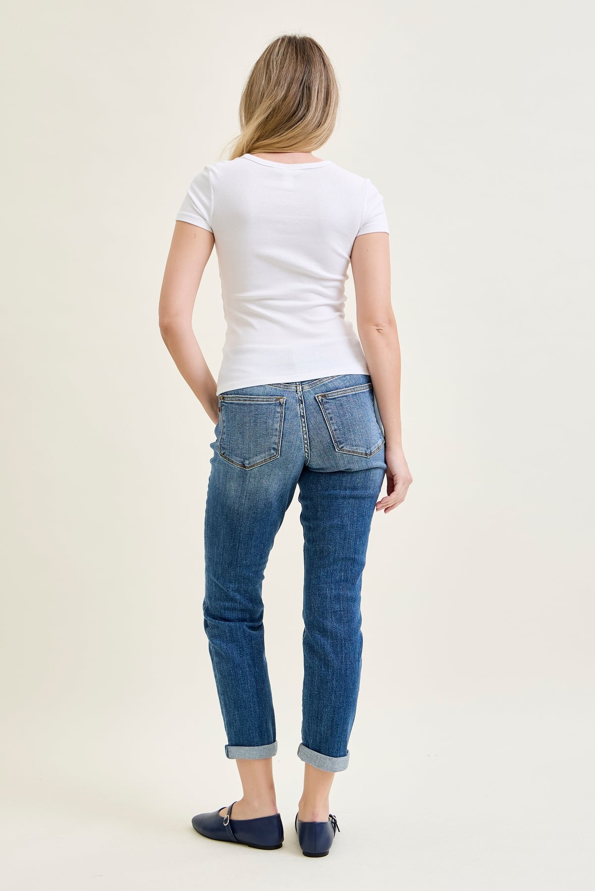 Amber Mid Rise Vintage Wash Non-Distressed Boyfriend