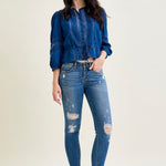 - Destroy Hem Detail – Adds a cool, distressed finish for an effortless vibe