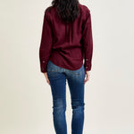 Hand wash in cold water separately from dark colors. Avoid wringing or twisting. Do not bleach. Lay flat to dry and use a low iron if needed. Color may transfer onto light-colored fabrics or similar materials.