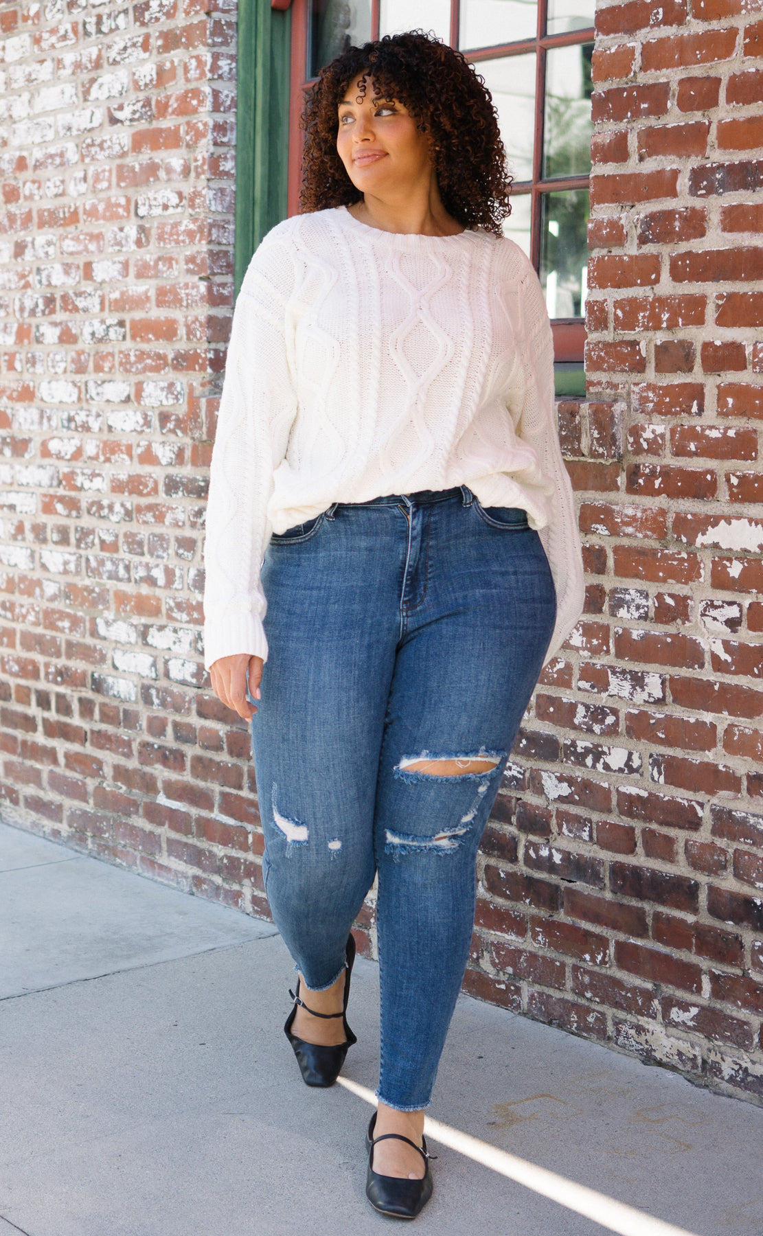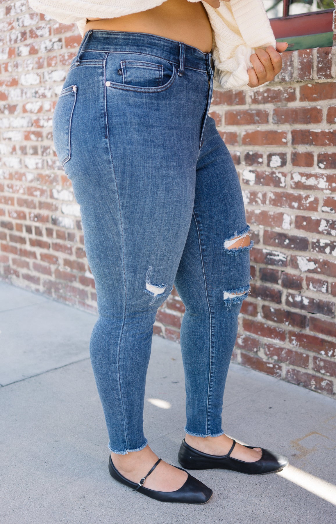 Andrea High Waist Skinny Jeans with Rips - PLUS