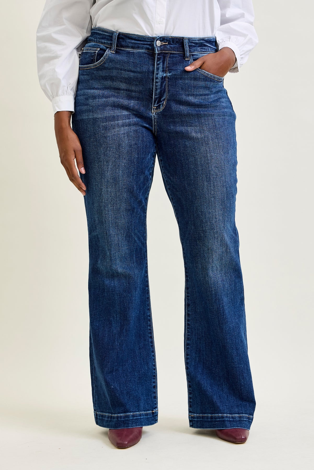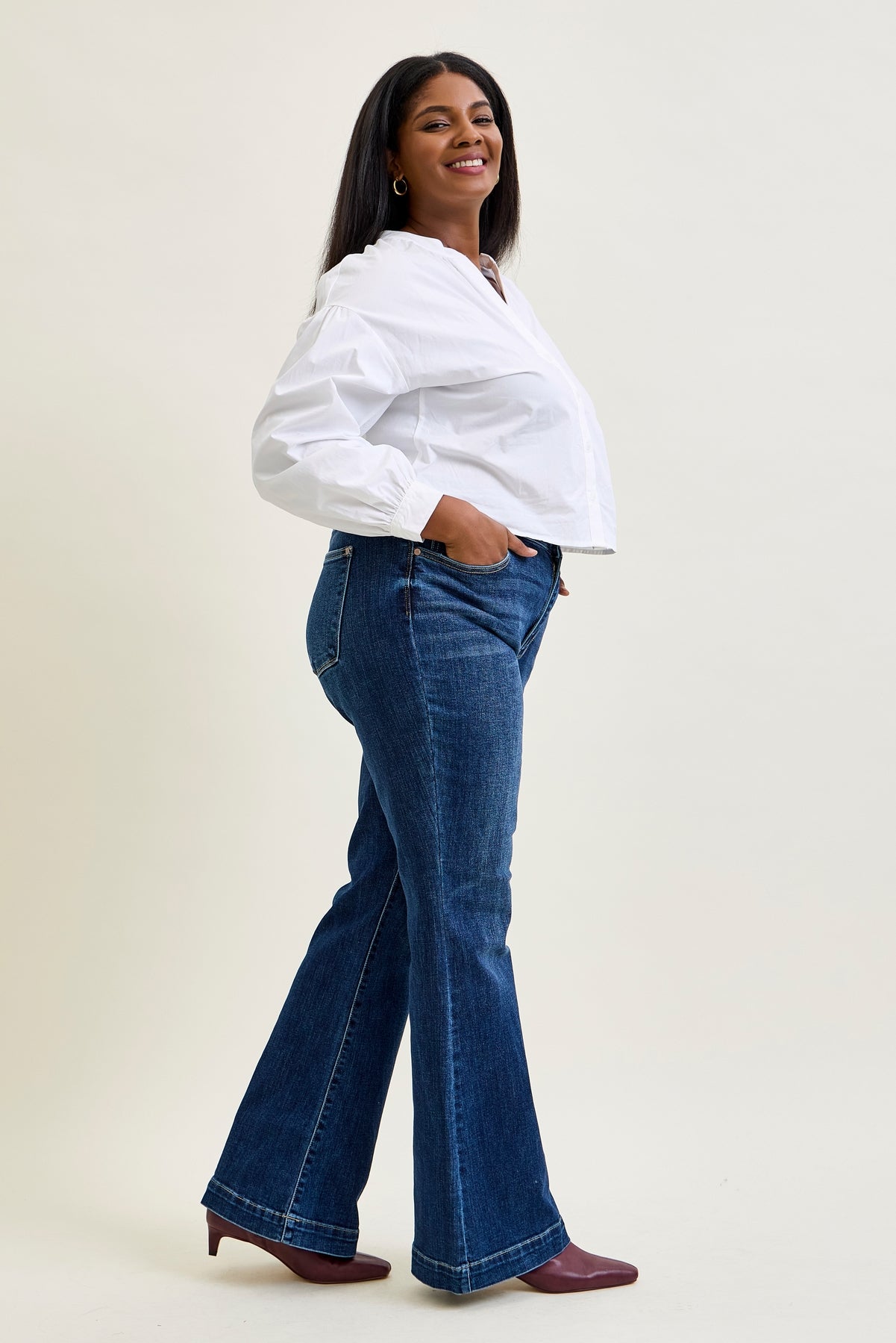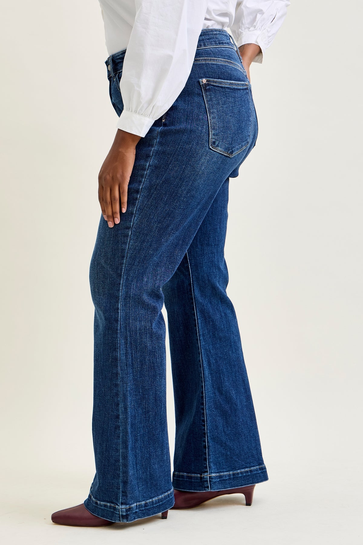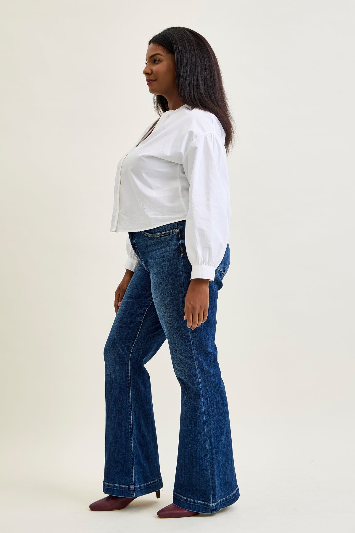 Jasmine is ready to make a statement. With a high rise fit and dramatic flare, this pair turns every sidewalk into a runway.