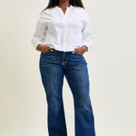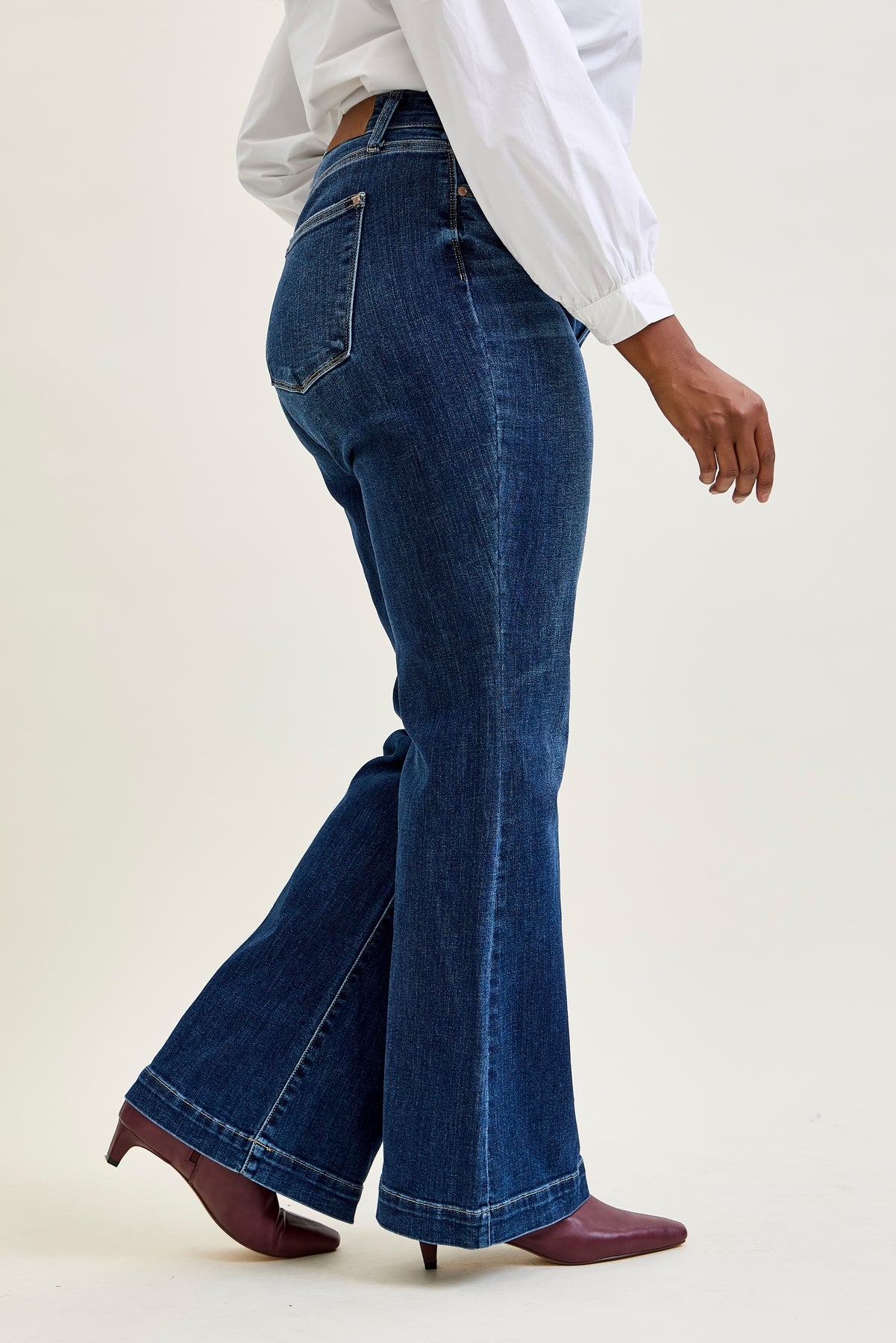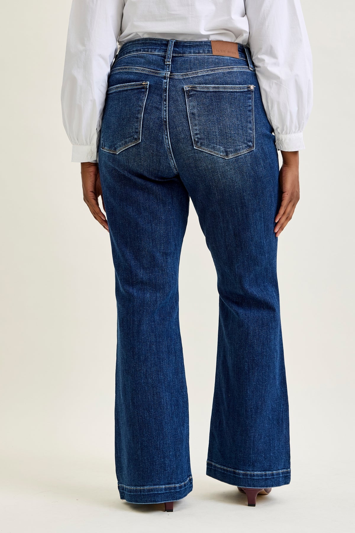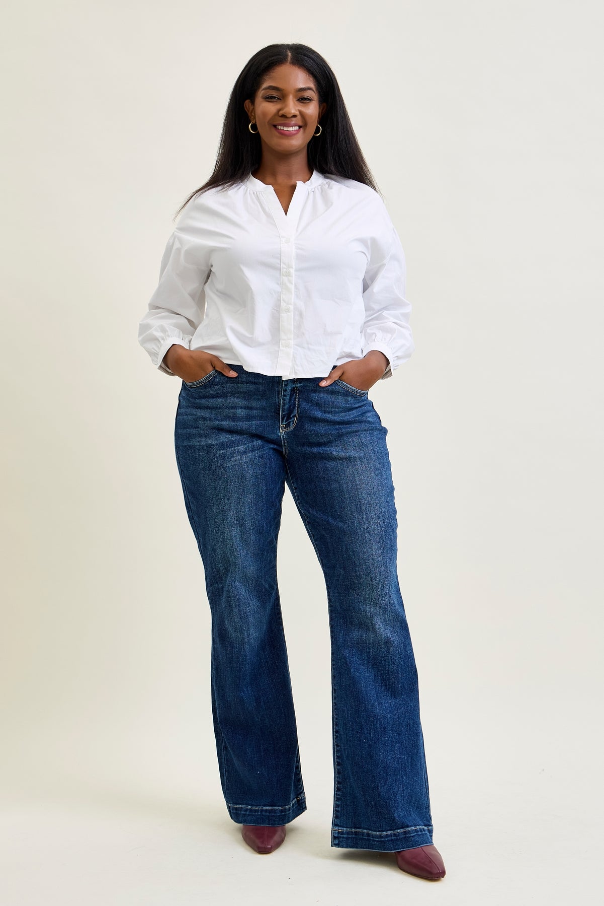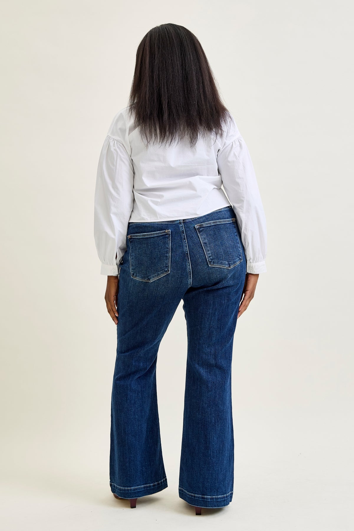 Jasmine is ready to make a statement. With a high rise fit and dramatic flare, this pair turns every sidewalk into a runway.