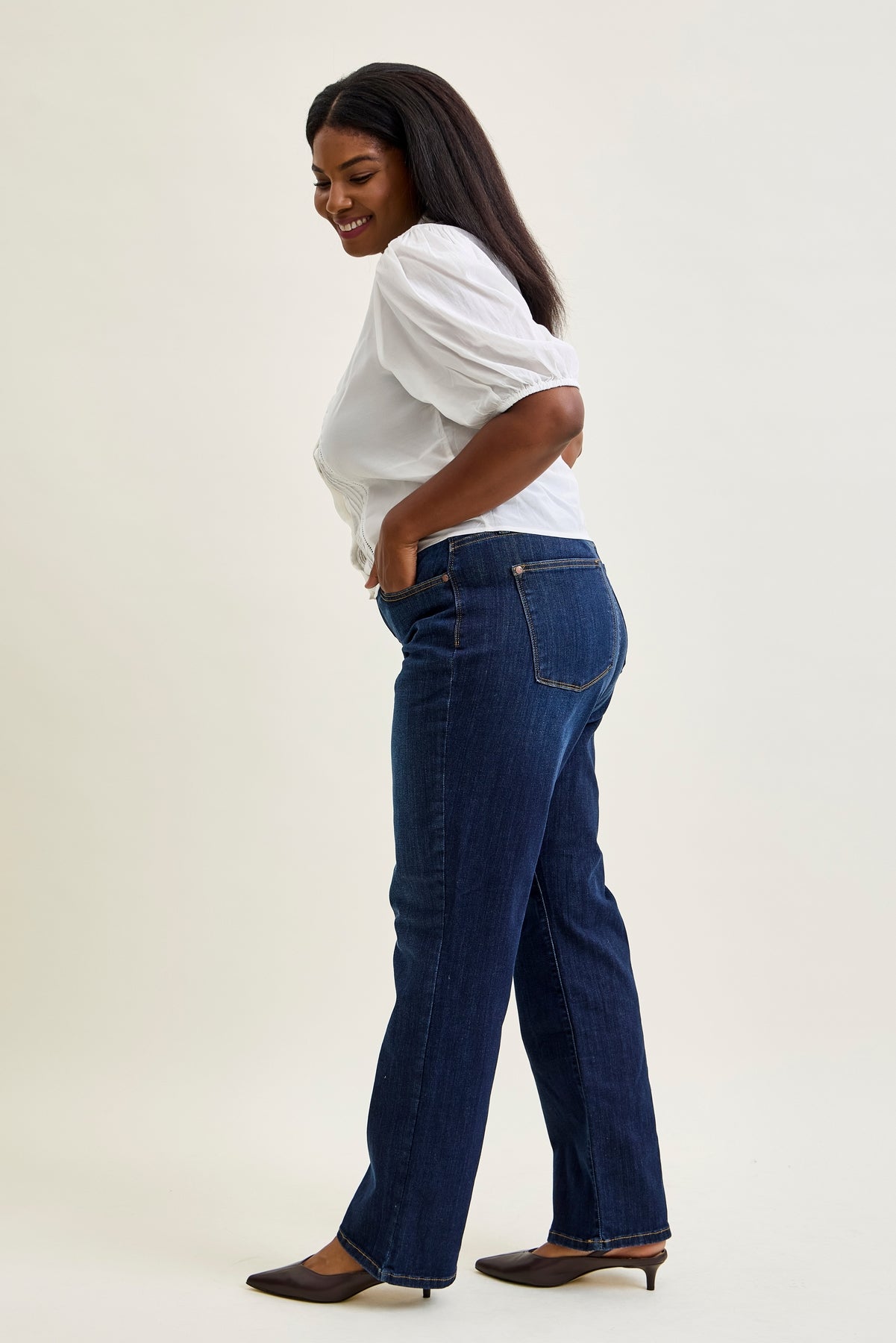 I have bought many pairs of jeans in every cut a manufacturer can create. Nothing ever fit “just right”. This brand is the BEST. I wanted a nice pair of dark blue & thought I’d check these out. I put them on the 1st time, I thought there’s no way they will button. With the stretch in the material, they not only buttoned but did not cut into my waist. Unlike other brands, they don’t stretch out to sag or slide down off the waistline. I love the darker blue to dress up or down. I have bought multiple pairs of jeans made by this brand. Instead of leggings, I can wear jeans and seriously be more comfortable.