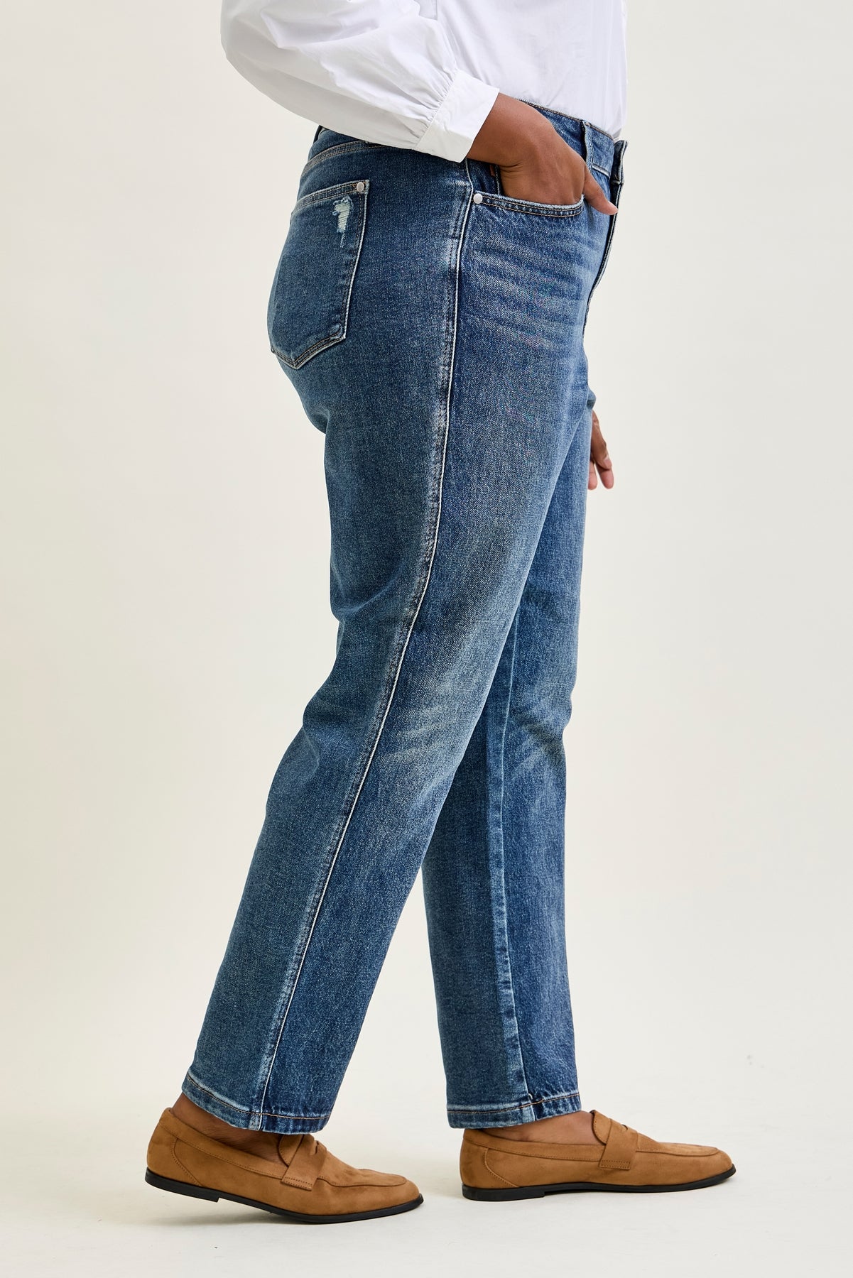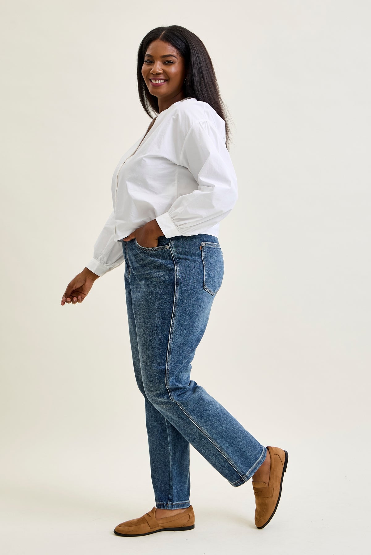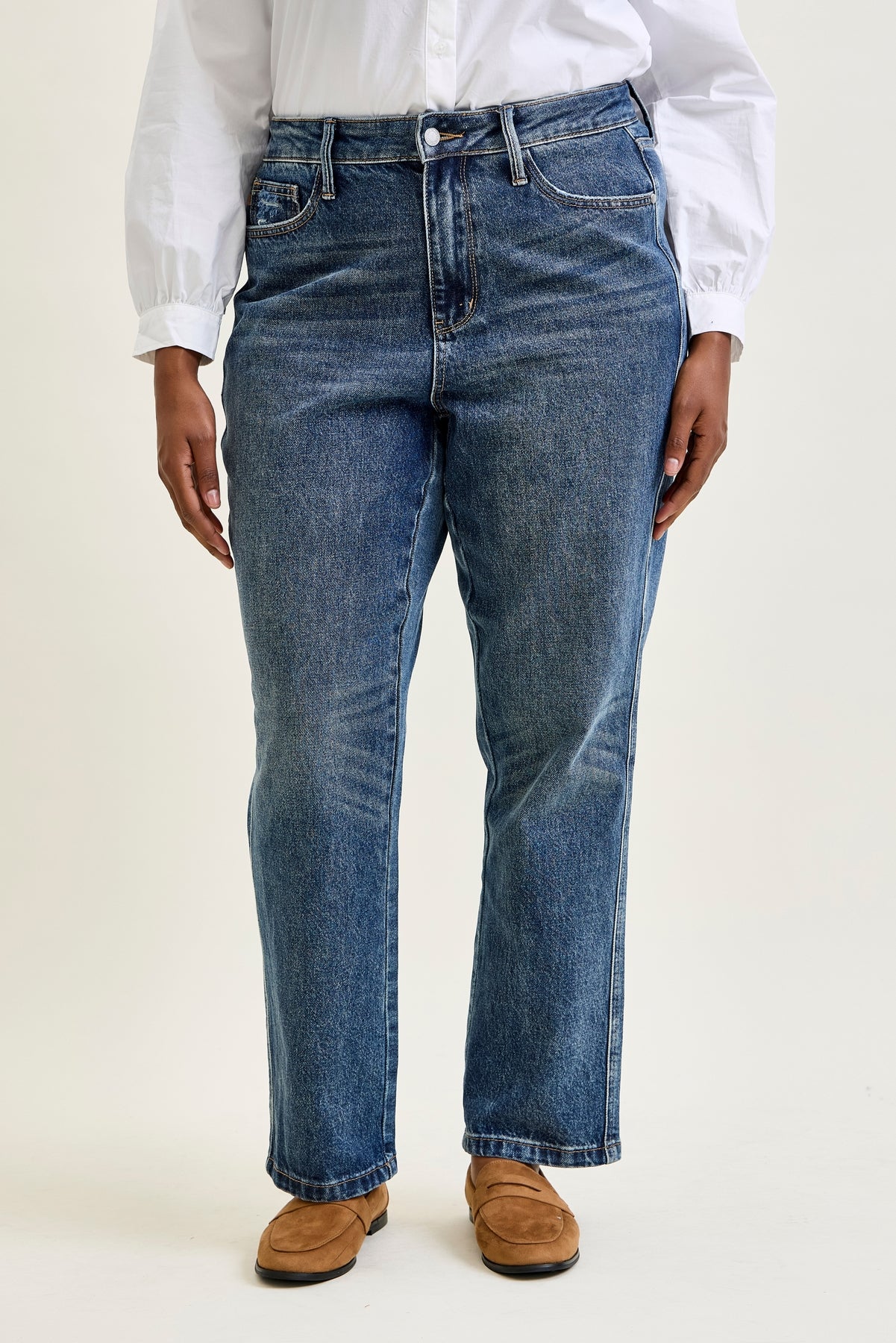 Rigid magic with a clean straight fit, a touch of stretch where you need it, and a timeless high-rise that flatters every look.