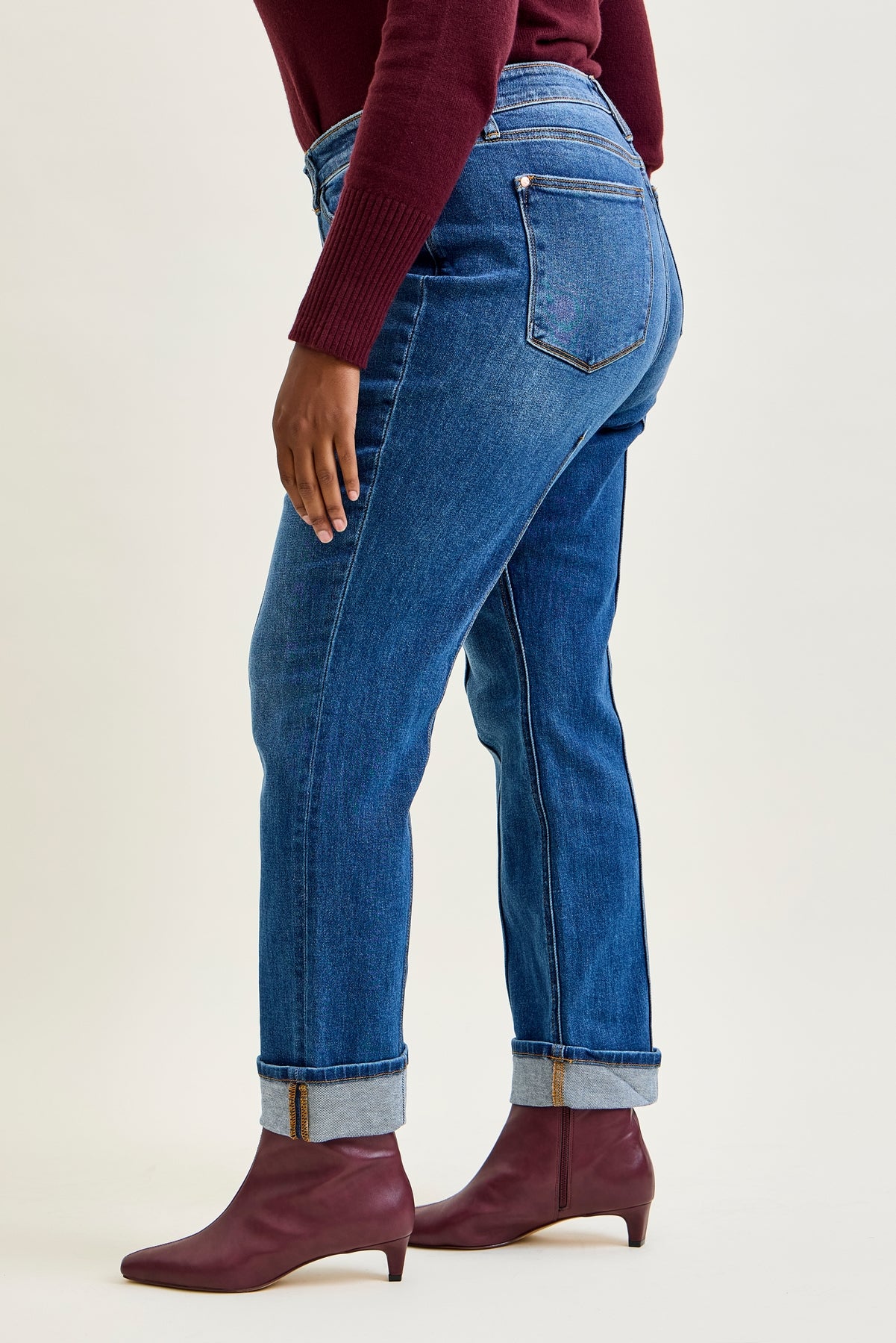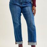 Sally High Rise Front Seam Detail & Cuffed Straight Fit Jeans - PLUS