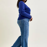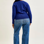 These jeans feature a unique V-front waistband with a mid-rise front and high-waisted back for a flattering, sculpted fit. The classic straight-leg cut and vintage wash make them a versatile staple with just the right amount of stretch.