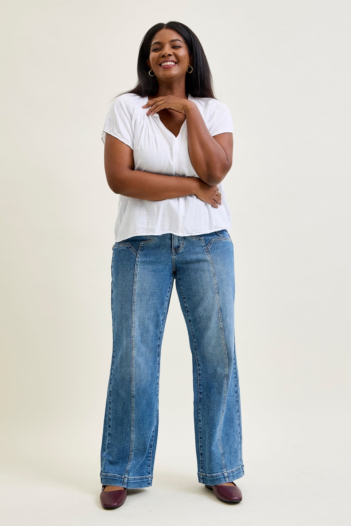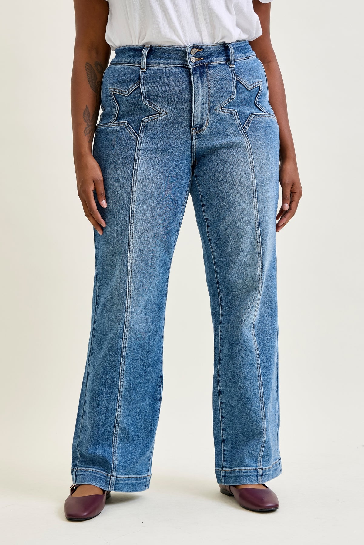 Eliza High Rise Wide Legs with Starry Flair - PLUS