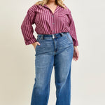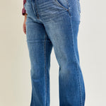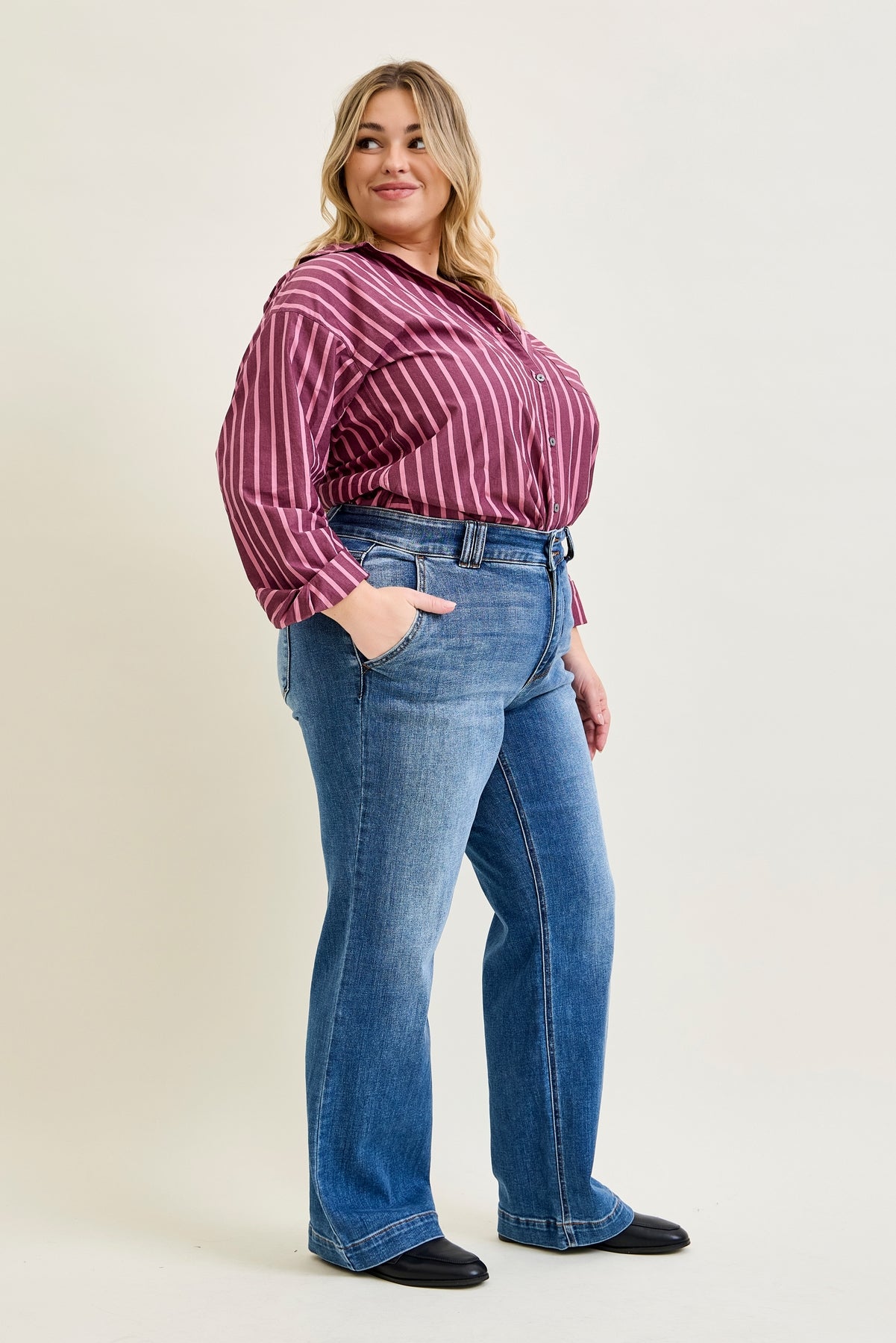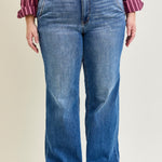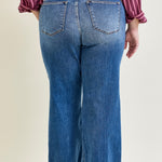 Clementine High Rise Double Button Wide Leg Denim Jeans - PLUS
