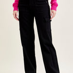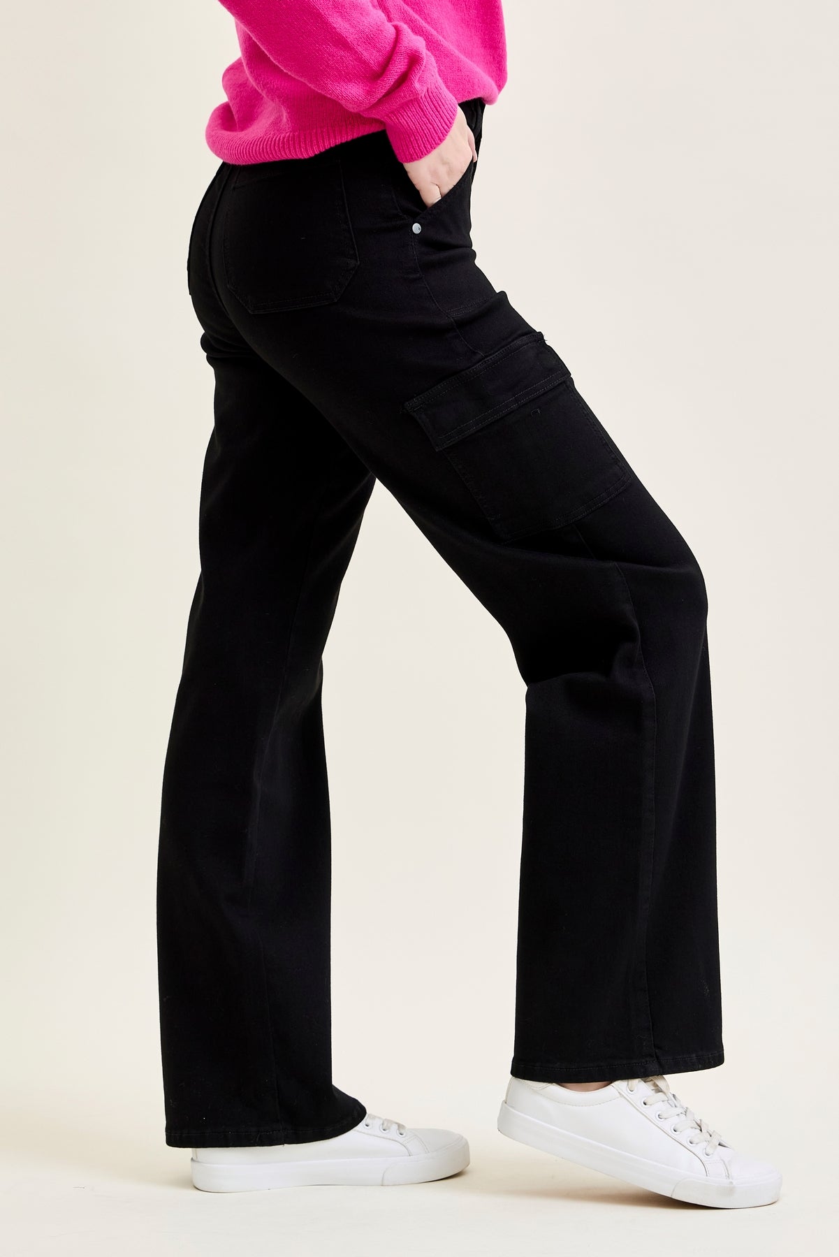 Designed for style and function, the Krystal High Rise Cargo Wide Leg jeans bring a modern edge to a classic silhouette.