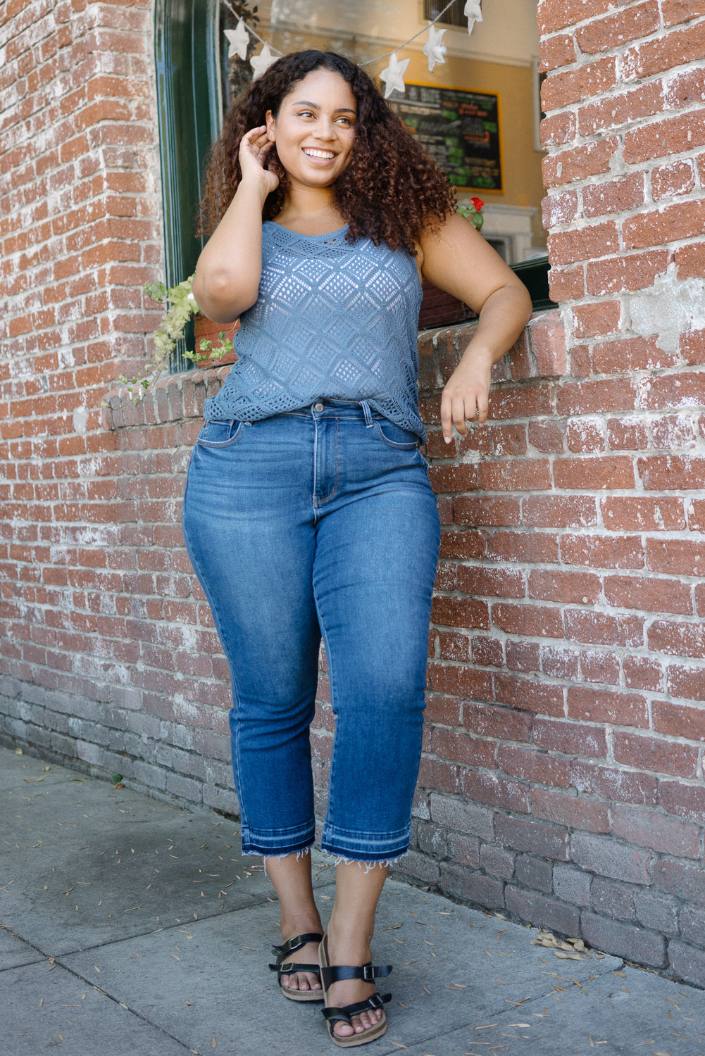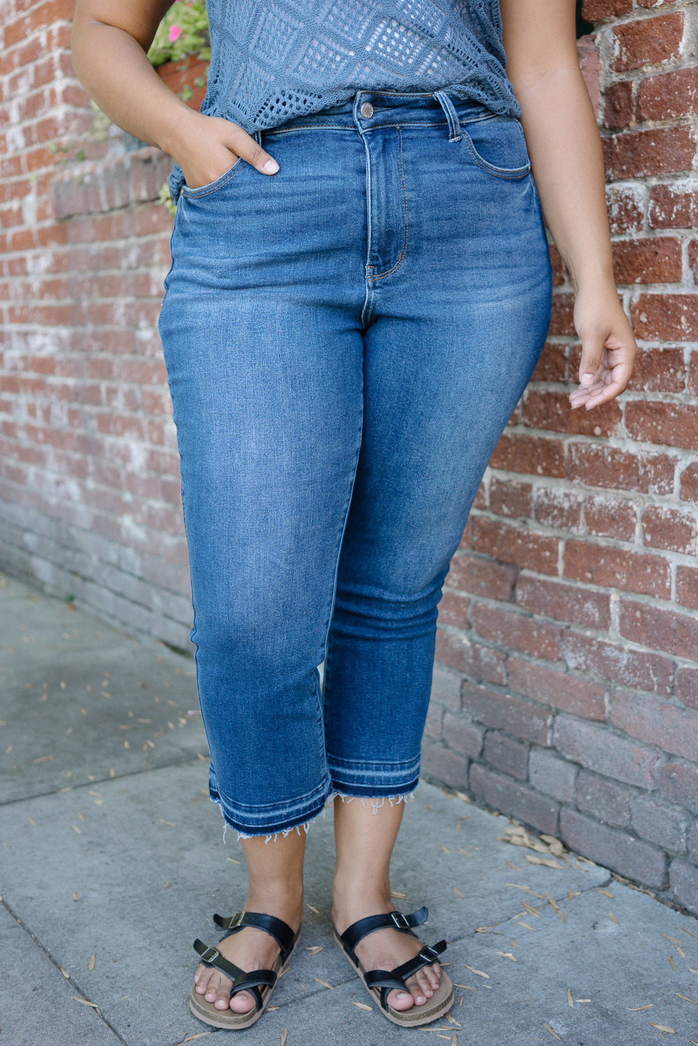 Aurora High Rise Vintage Wash Kick Flare With Released Hem - PLUS