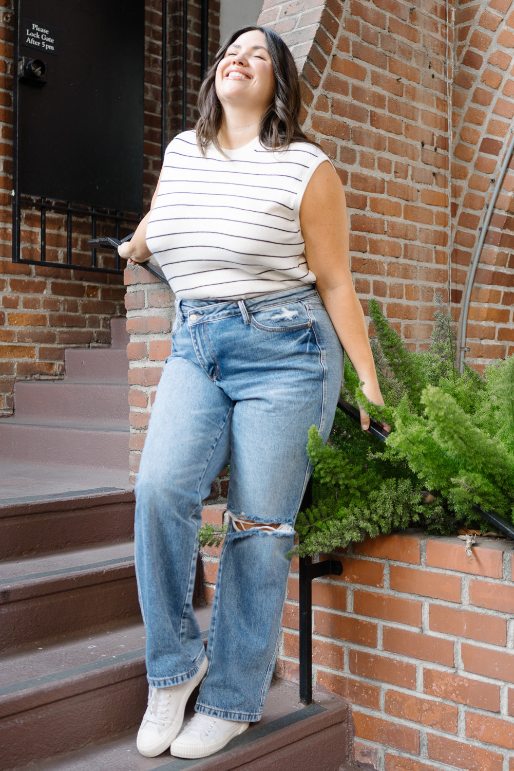 These jeans ended up fitting just as perfectly as I had hoped. I have always stuck with skinny jeans, or shorter boyfriend jeans. However, this style always looked so cute and thus pair was designed in such a way that it enticed me to buy them. I AM SO GLAD I DID!! They fit perfectly, the crossover look with the zipper is super fun and they are very comfortable.