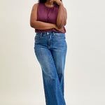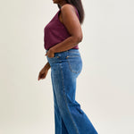 Channel vintage vibes with a modern twist in the Claribel High Rise Tummy Control Retro Wide Leg Jeans-designed to give you style and confidence all in one.