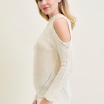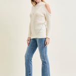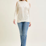 A modern take on the cable knit, cozy warmth with a touch of shoulder-baring charm.