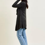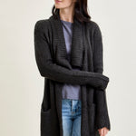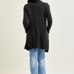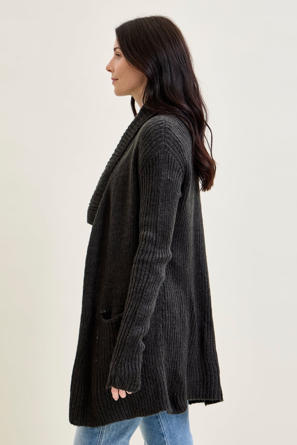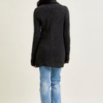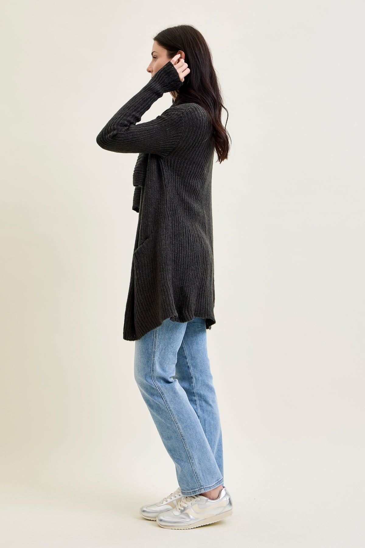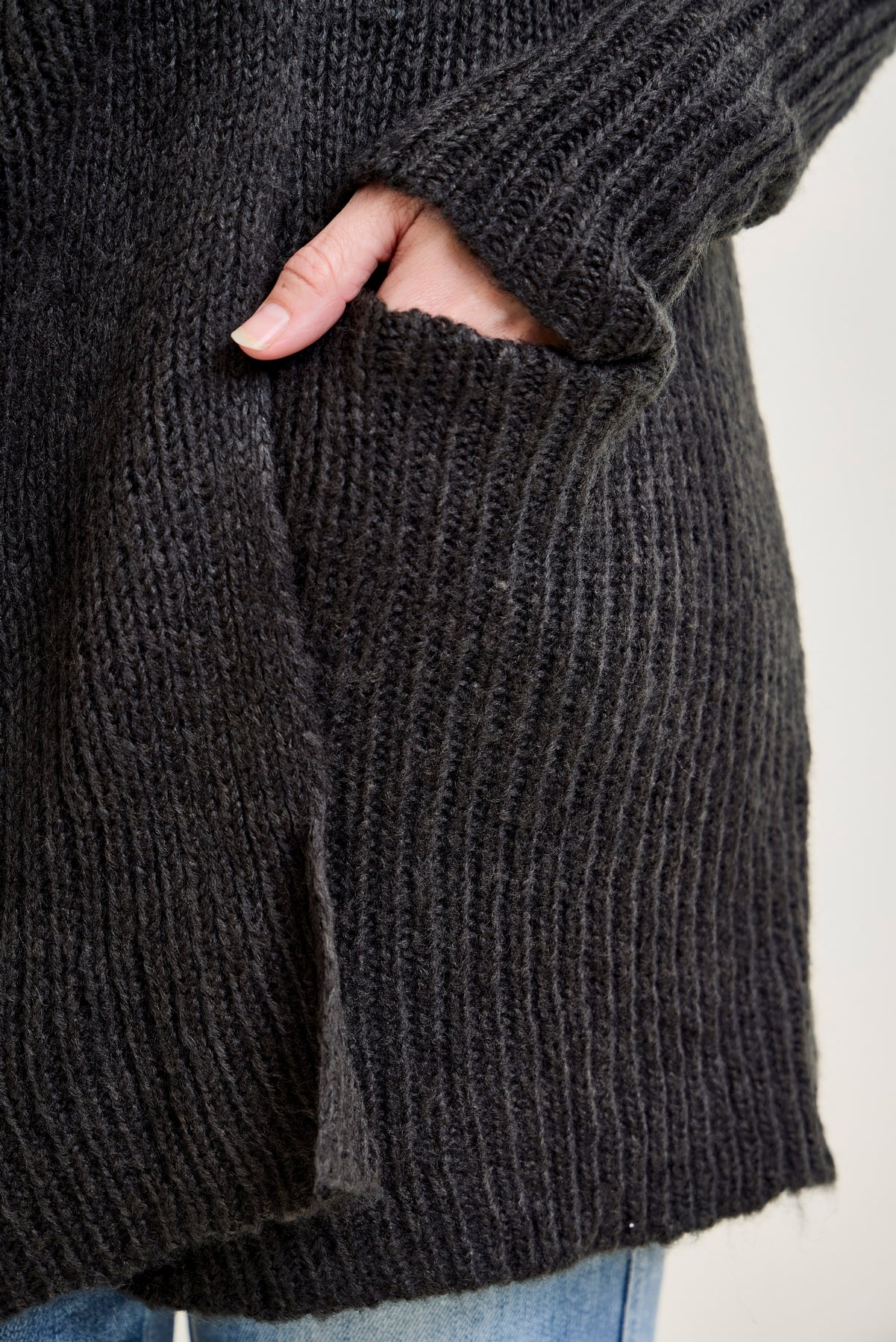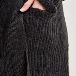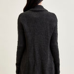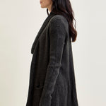 Soft grey tones meet a timeless draped silhouette for the ultimate cozy-chic look.