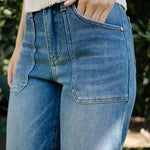 A modern take on utility style, the Georgia High Rise Utility Cropped Wide Leg jeans blend structure, comfort, and effortless versatility.