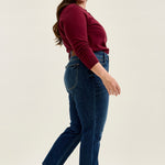 The Gracie High-Rise Slim Fit jeans are all about flattering lines and standout details, thanks to those unique shield back pockets. They hug just right with a touch of stretch, giving you that perfect balance of structure and comfort. Whether you’re dressing them up or keeping it casual, Gracie’s always got your back.