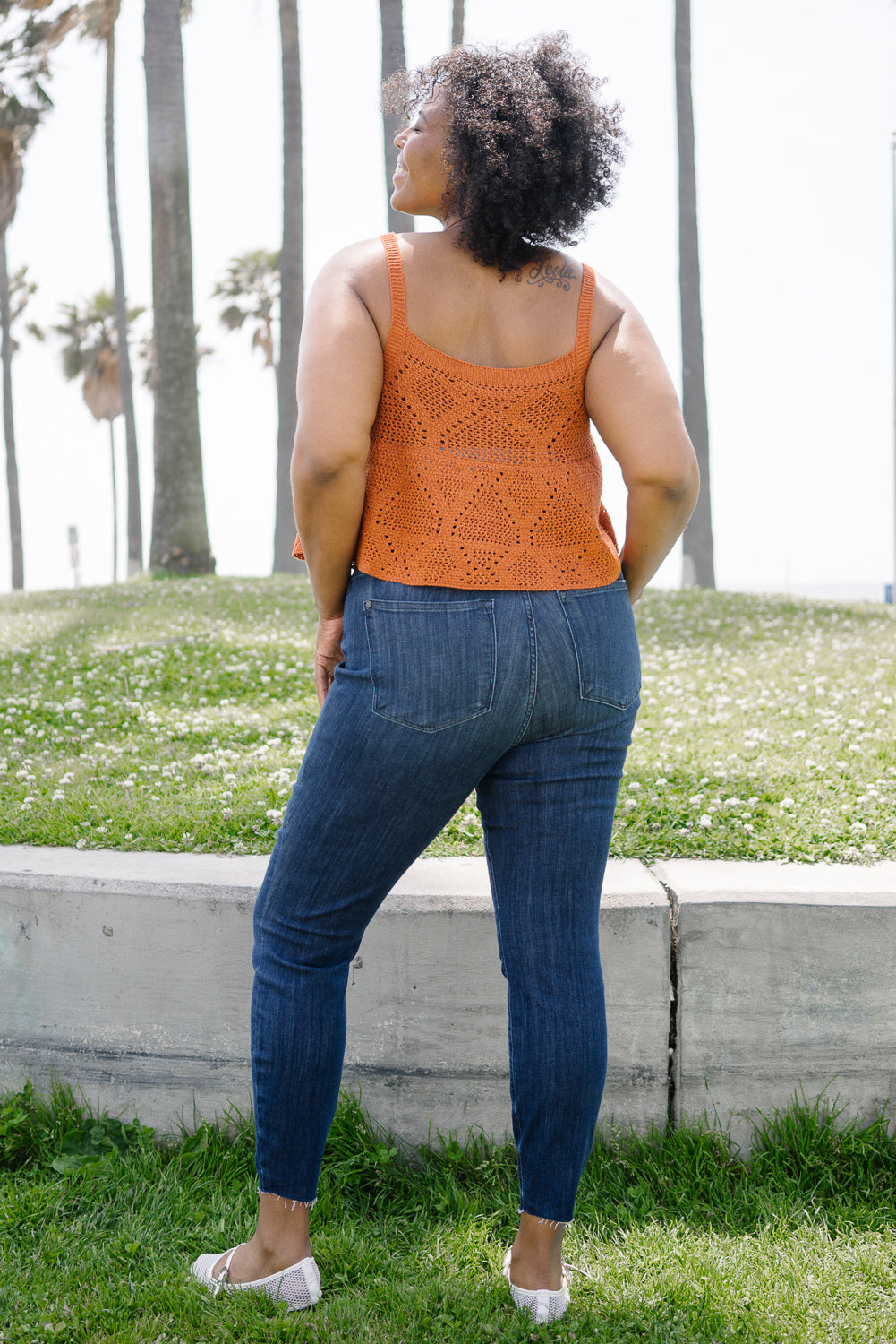 The Kinsley jeans serve up just the right amount of edge with a raw hem and a curve-loving fit that keeps things sleek from top to bottom.