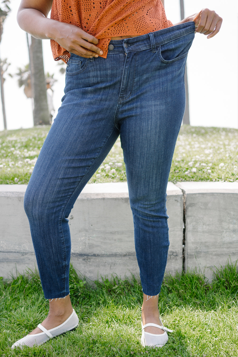 Kinsley Edgy Mid-Rise Skinnies with a Raw Twist - PLUS