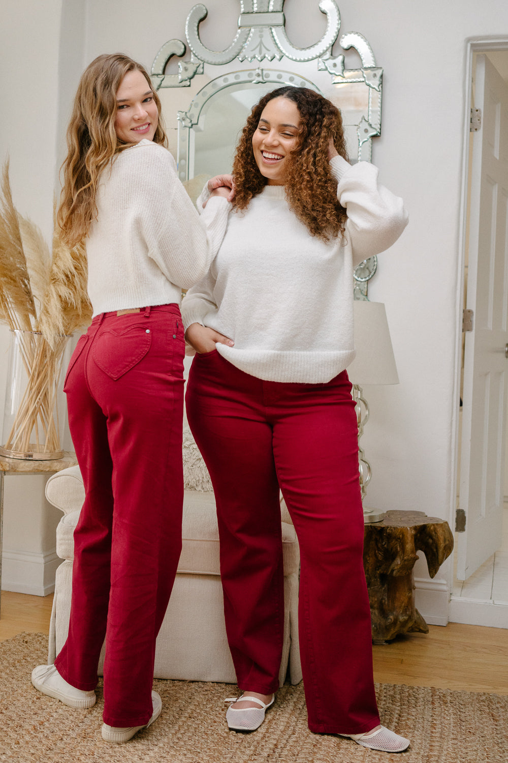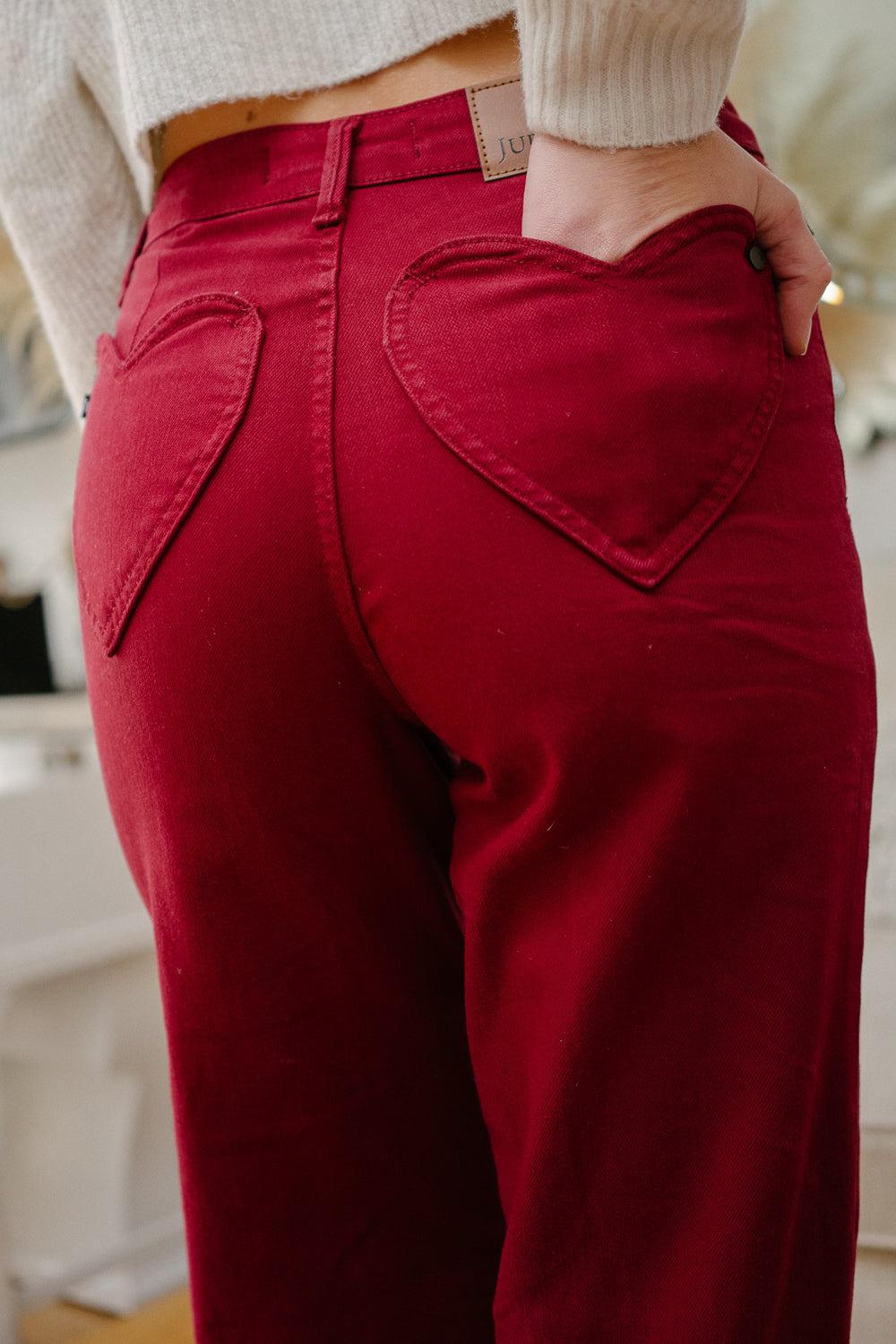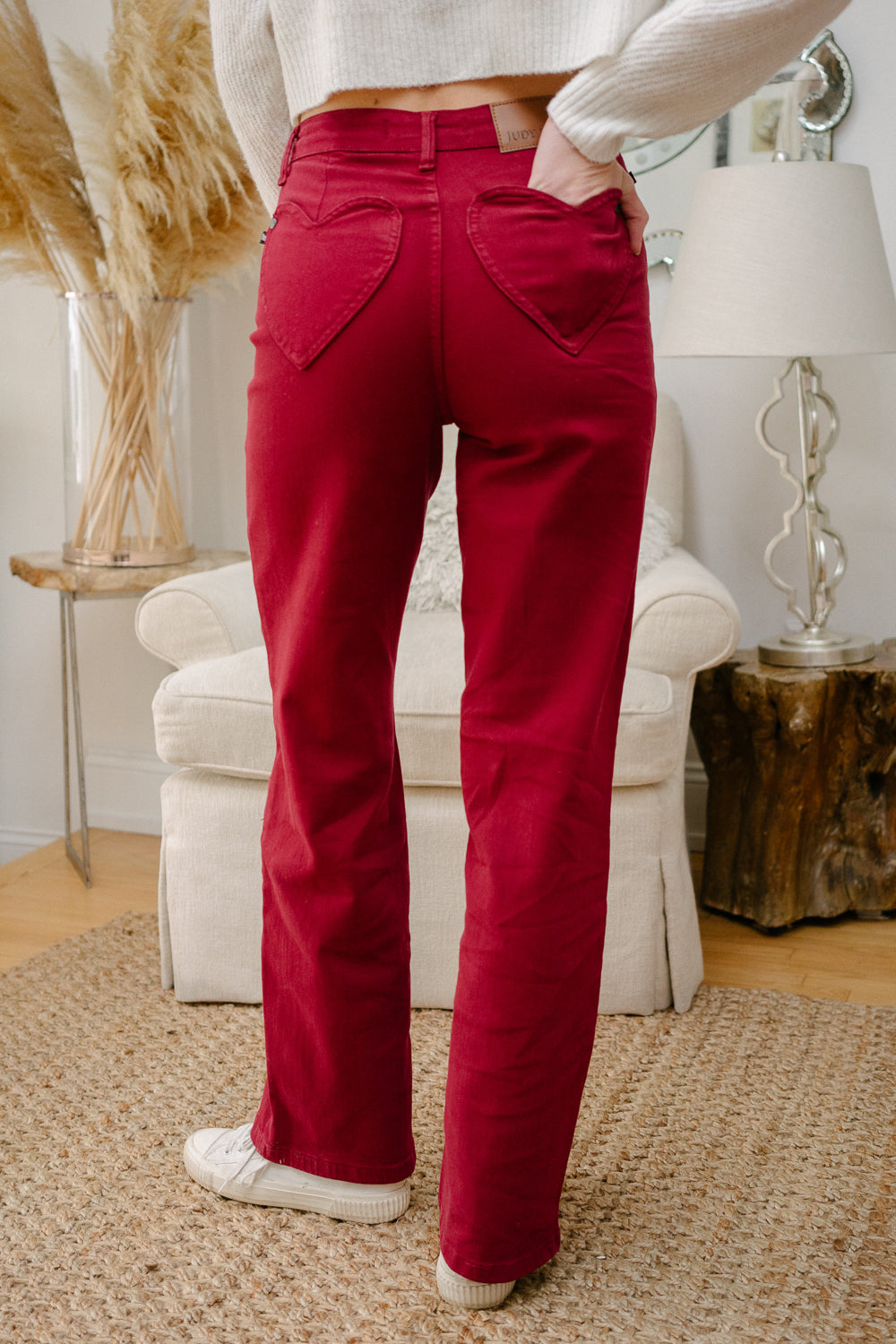 Rebecca High Rise 90's Straight Red Jeans with a Heart Pocket Design