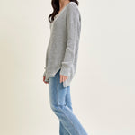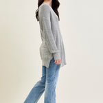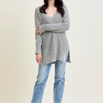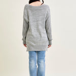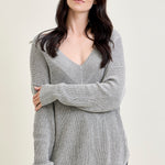 Slouchy V-Neck Off Shoulder Grey Sweater