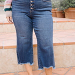 Wren High Rise Button Fly Distressed Hem Crop Wide - PLUS